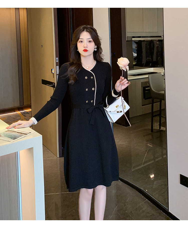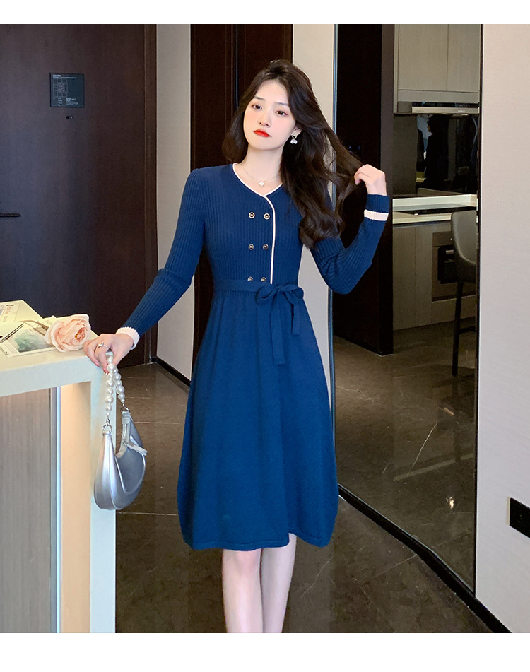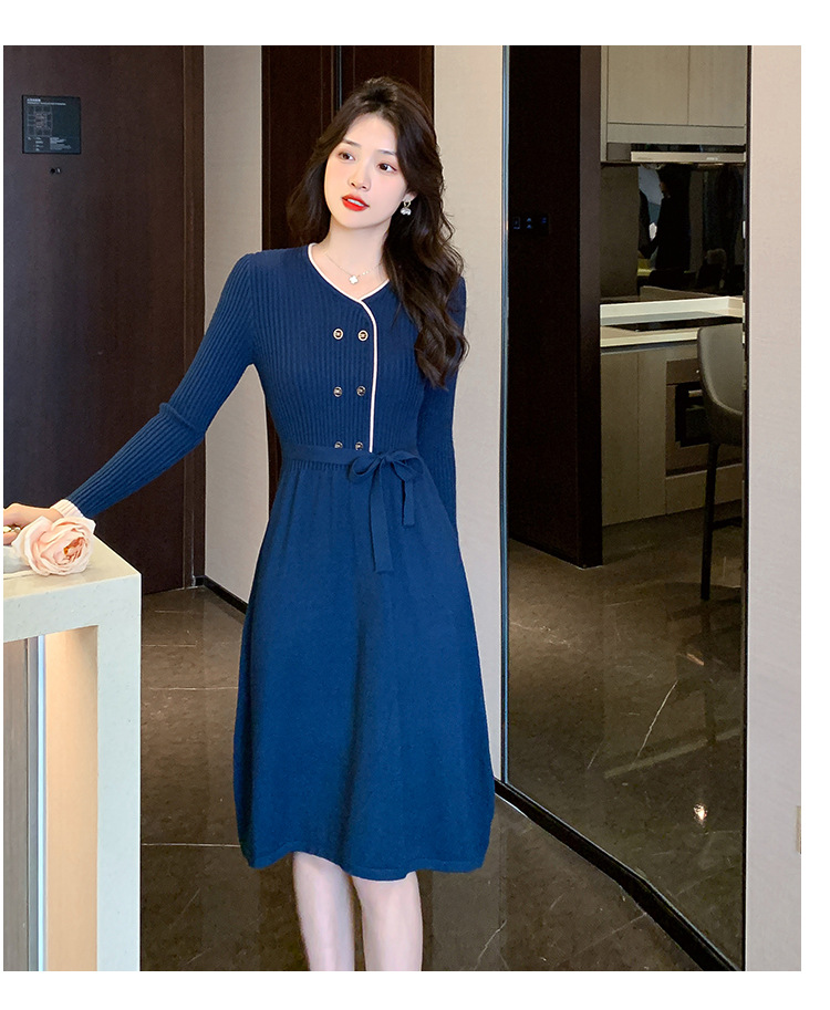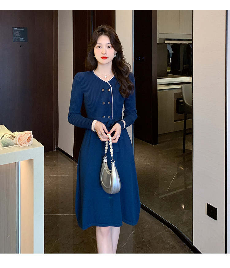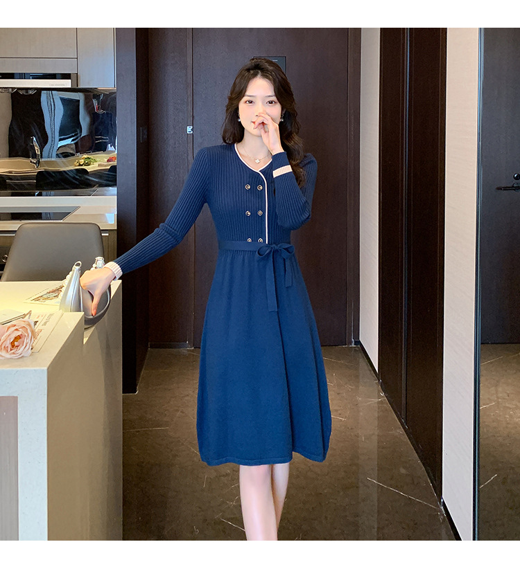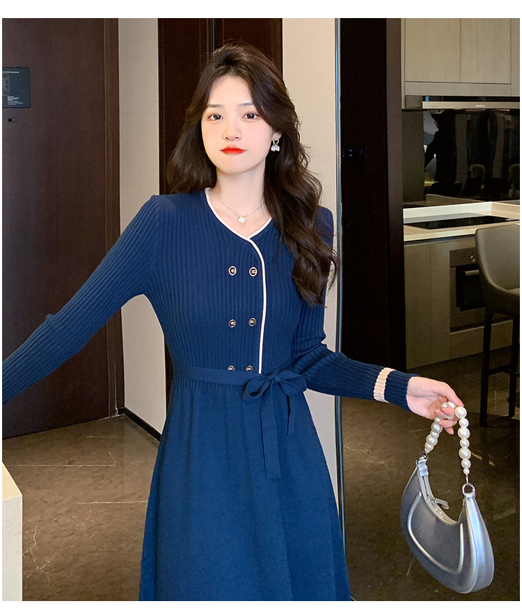 양모 스웨터 우아한 허리 원피스 여성의 가을과 겨울 레이스 업 아우터 스웨터 원피스 니트 베이스 캐시미어 스웨터스토어 가기