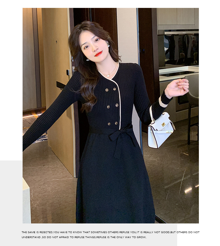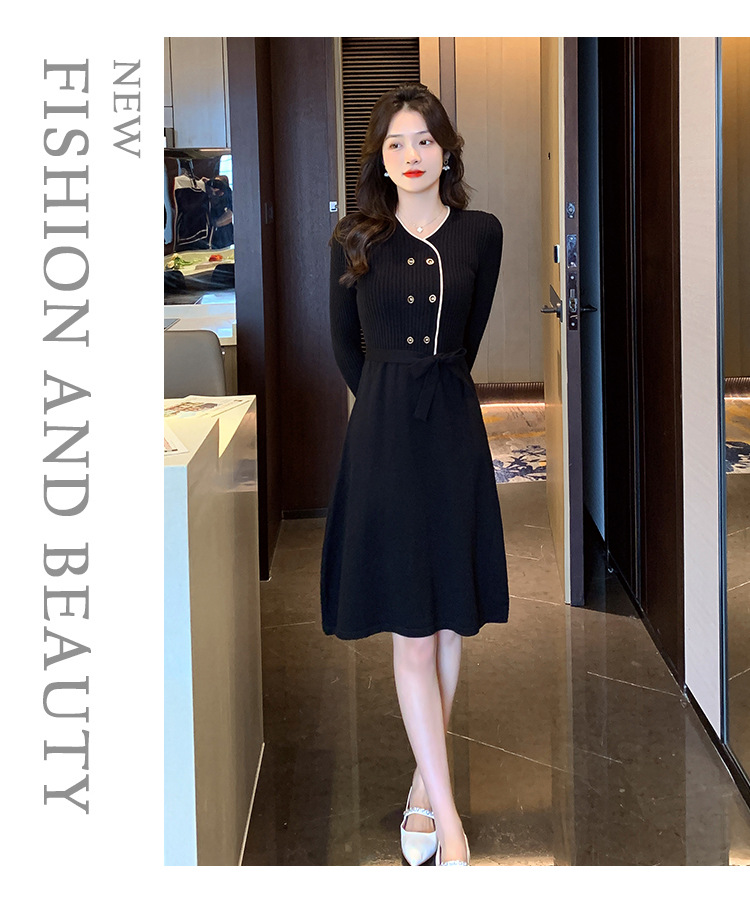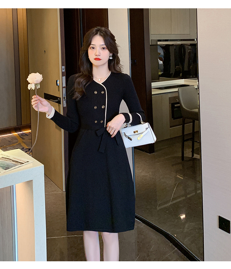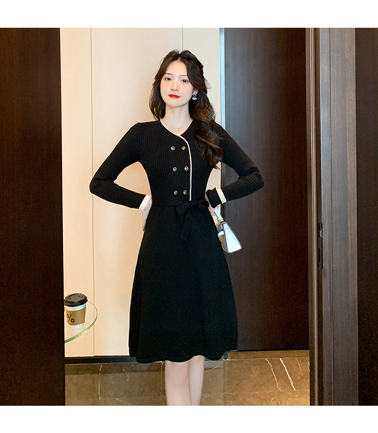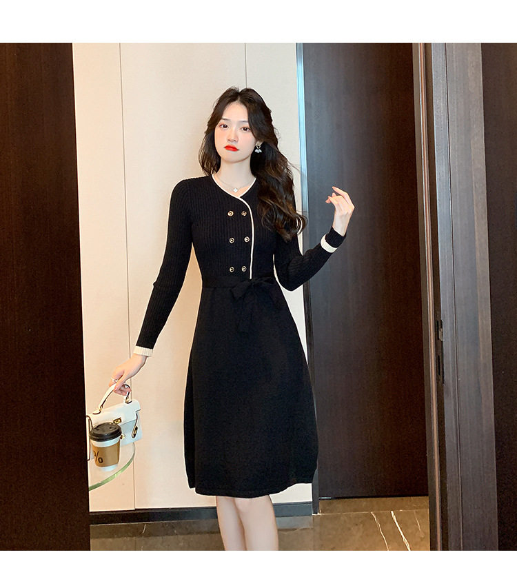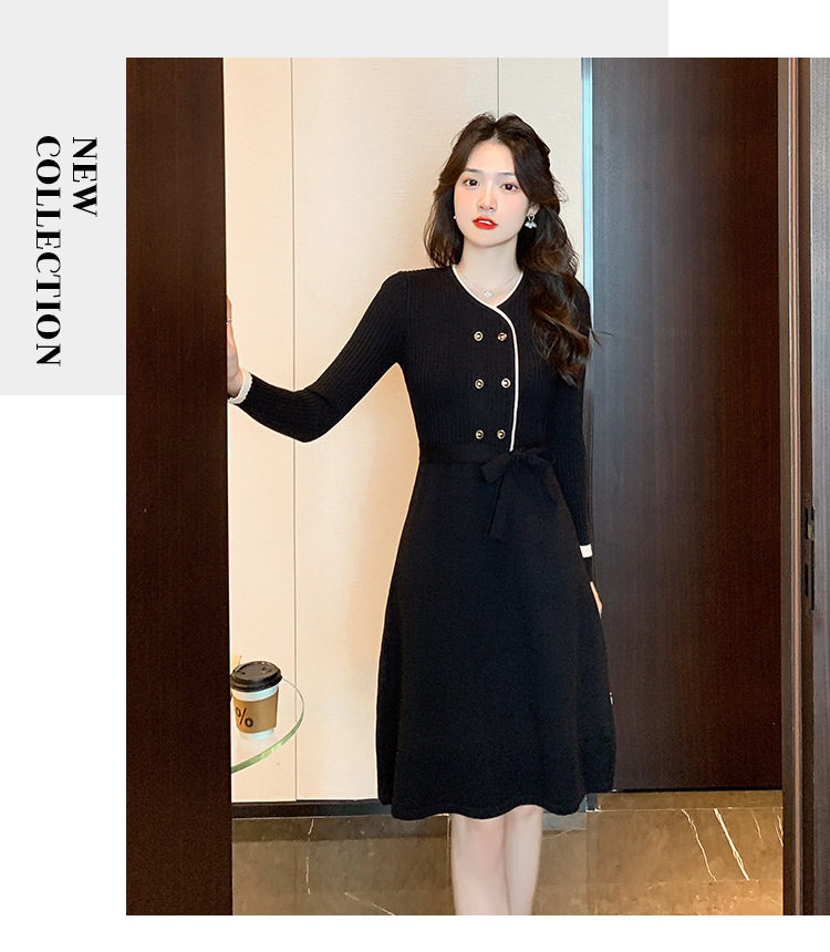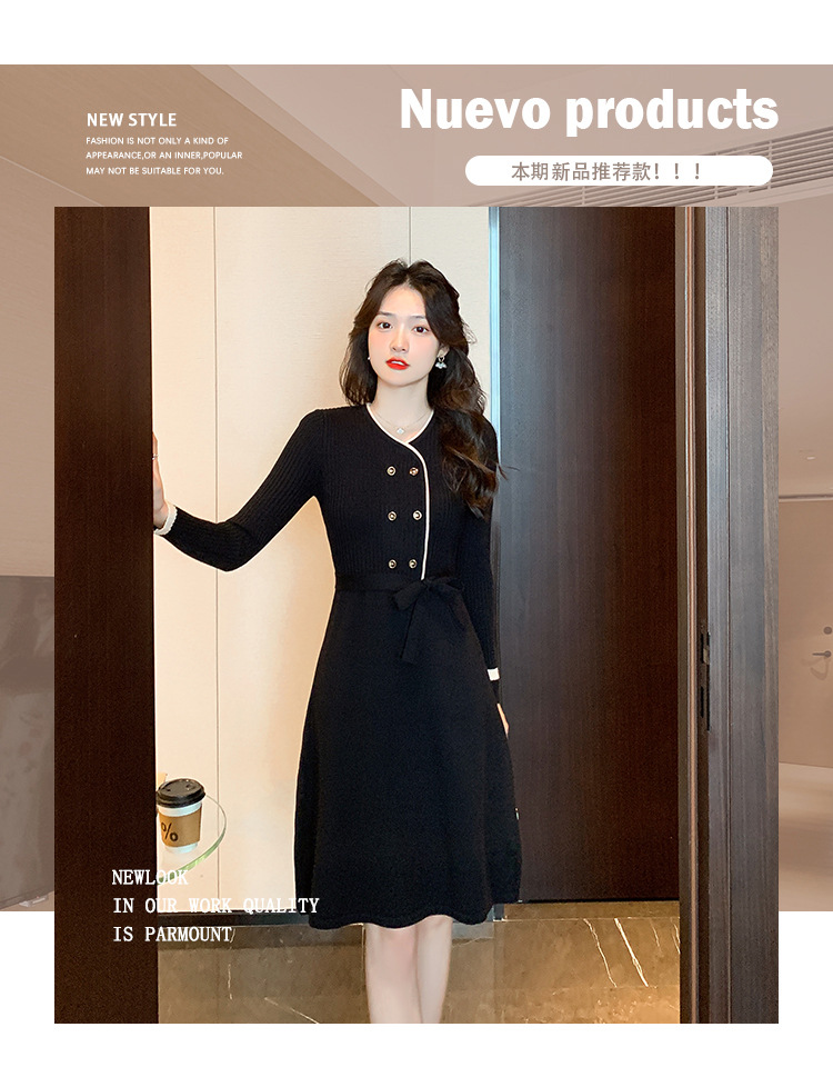양모 스웨터 우아한 허리 원피스 여성의 가을과 겨울 레이스 업 아우터 스웨터 원피스 니트 베이스 캐시미어 스웨터스토어 가기