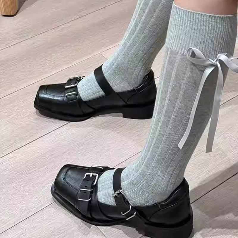빈티지 영국 메리 제인 작은 가죽 신발 여성의 2025 년 여름 새로운 도착 디아블로 펑크 얕은 입 두꺼운 단층 신발스토어 가기