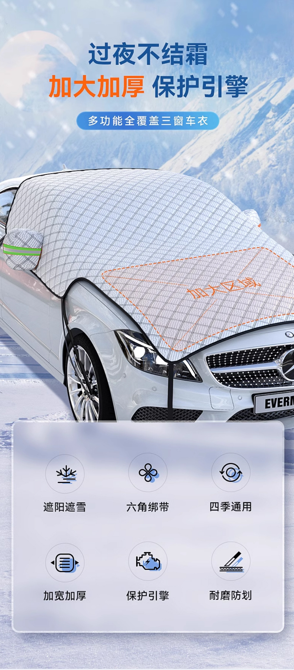 자동차 앞 유리 커버 여름 양산 겨울 눈 커버 절반 커버 자동차 커버 태양 보호 및 단열 두꺼운 앞 덮개