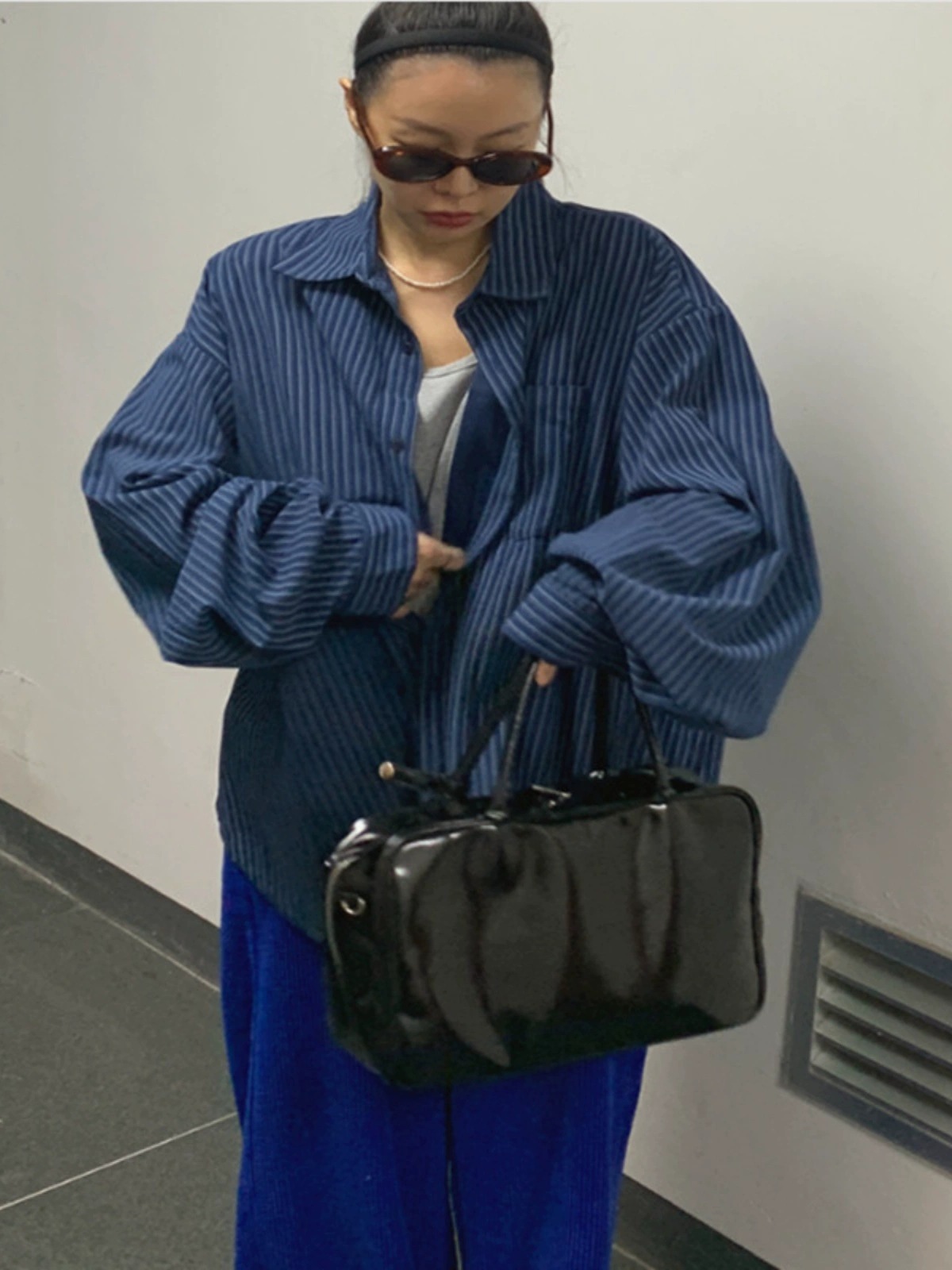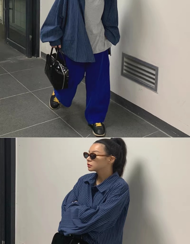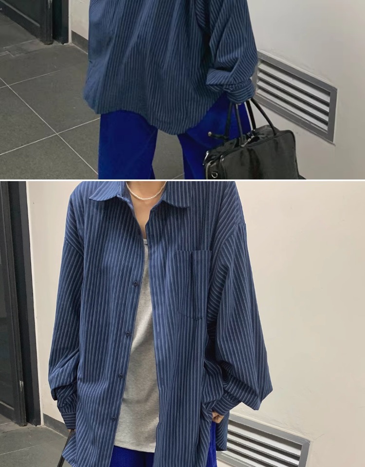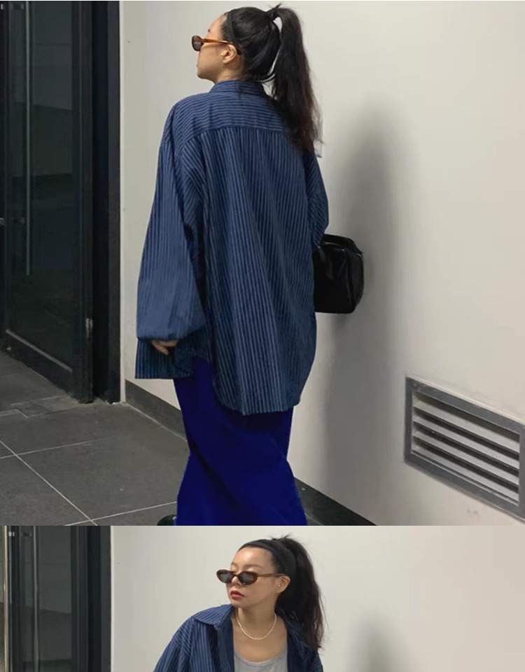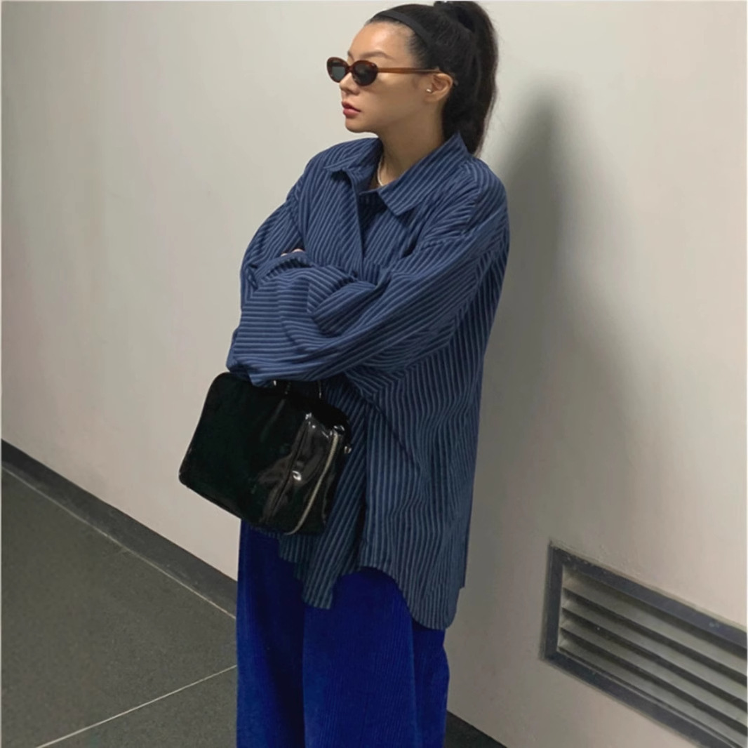 새로운 긴팔 줄무늬 셔츠 여성용 BF 느슨한 플러스 사이즈 게으른 스타일 캐주얼 셔츠 트렌디 한 태양 보호 코트스토어 가기