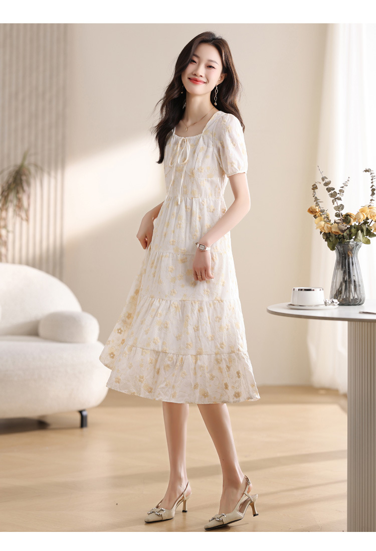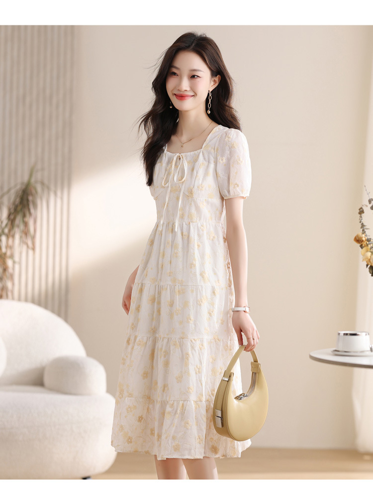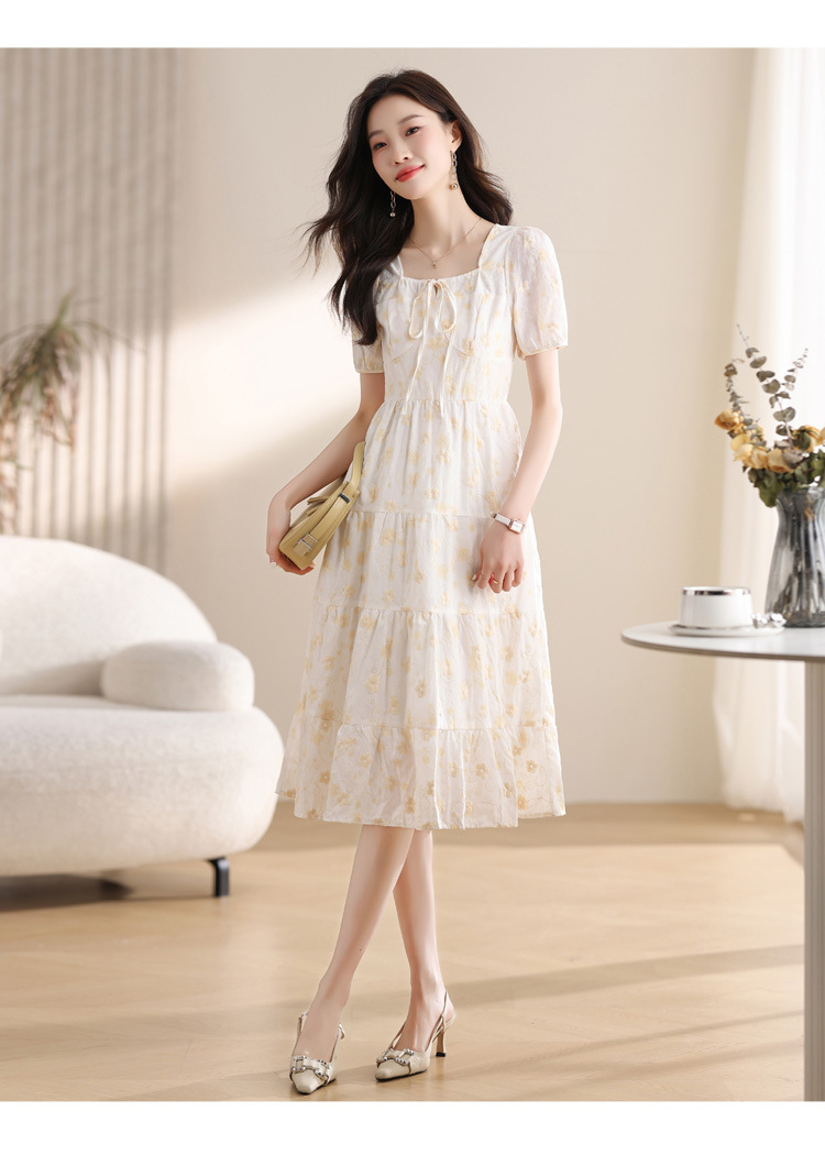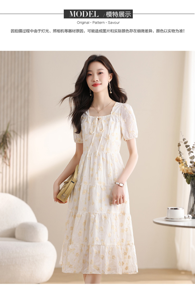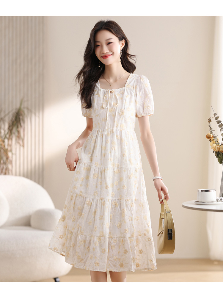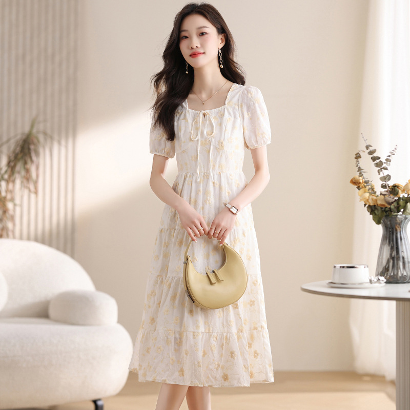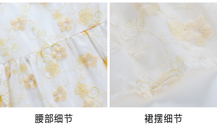 차 브레이크 프랑스 스타일 화이트 플로랄 원피스 어린이 여름 새로운 스타일 질감 허리 작은 남성스토어 가기