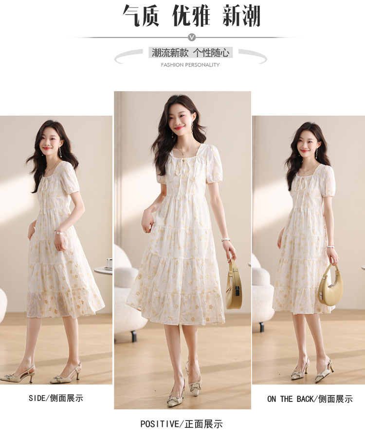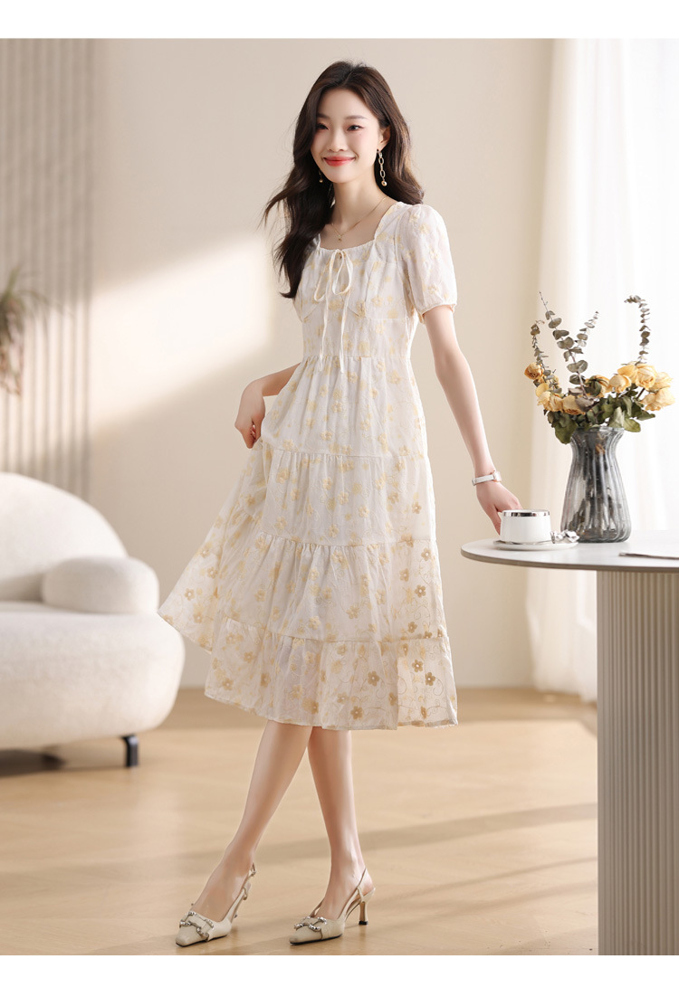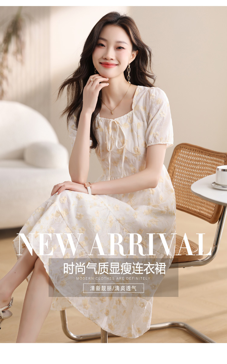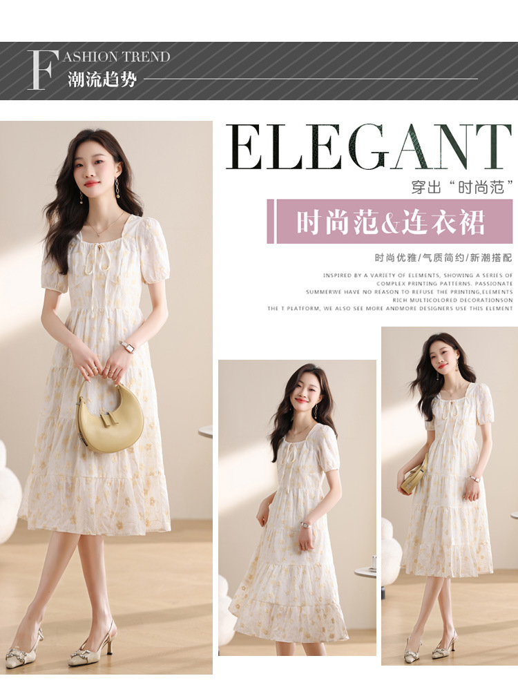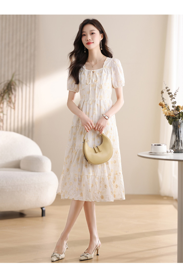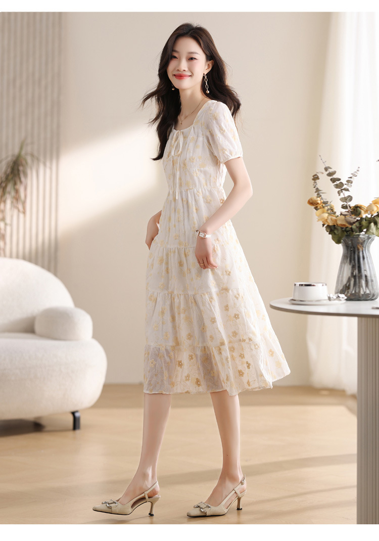 차 브레이크 프랑스 스타일 화이트 플로랄 원피스 어린이 여름 새로운 스타일 질감 허리 작은 남성스토어 가기