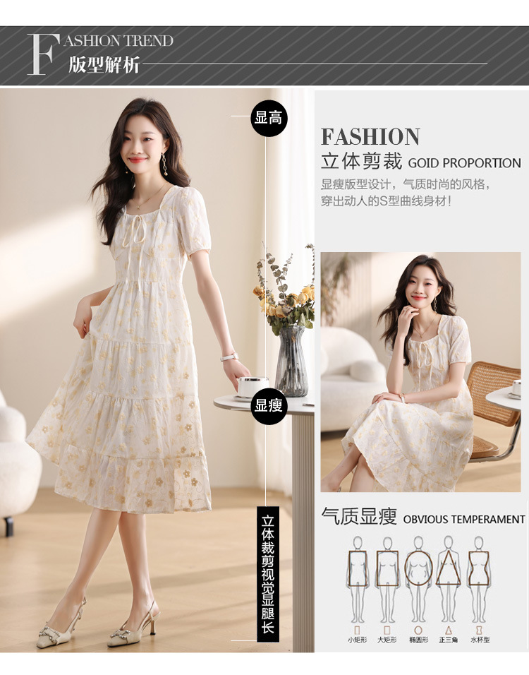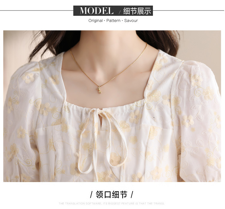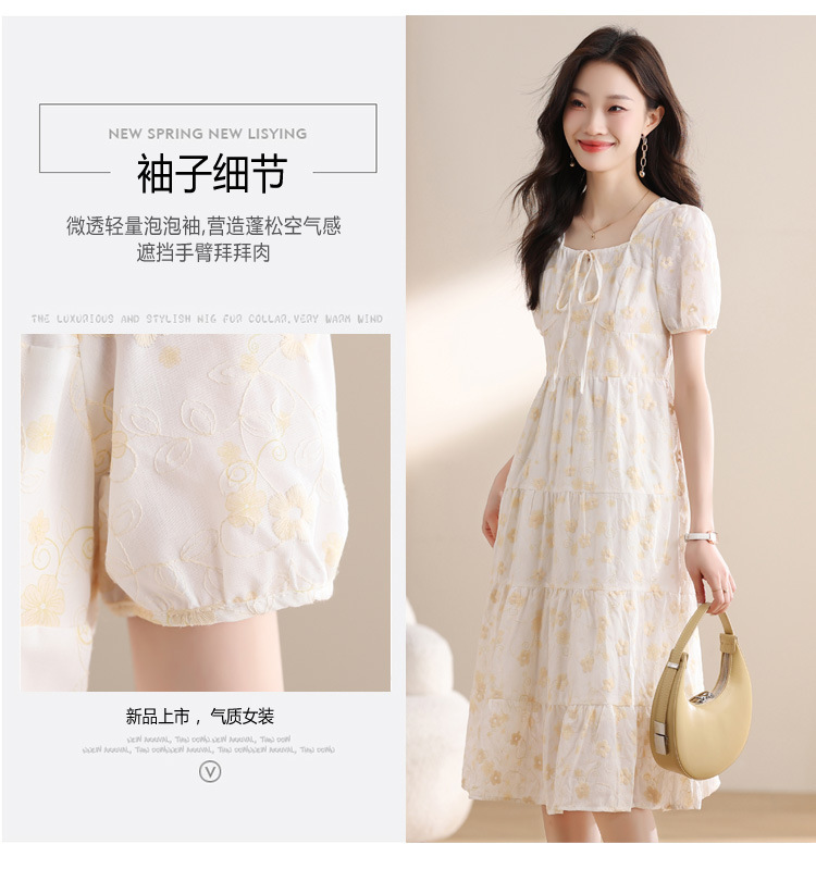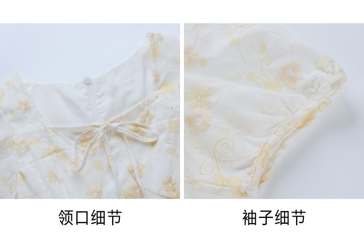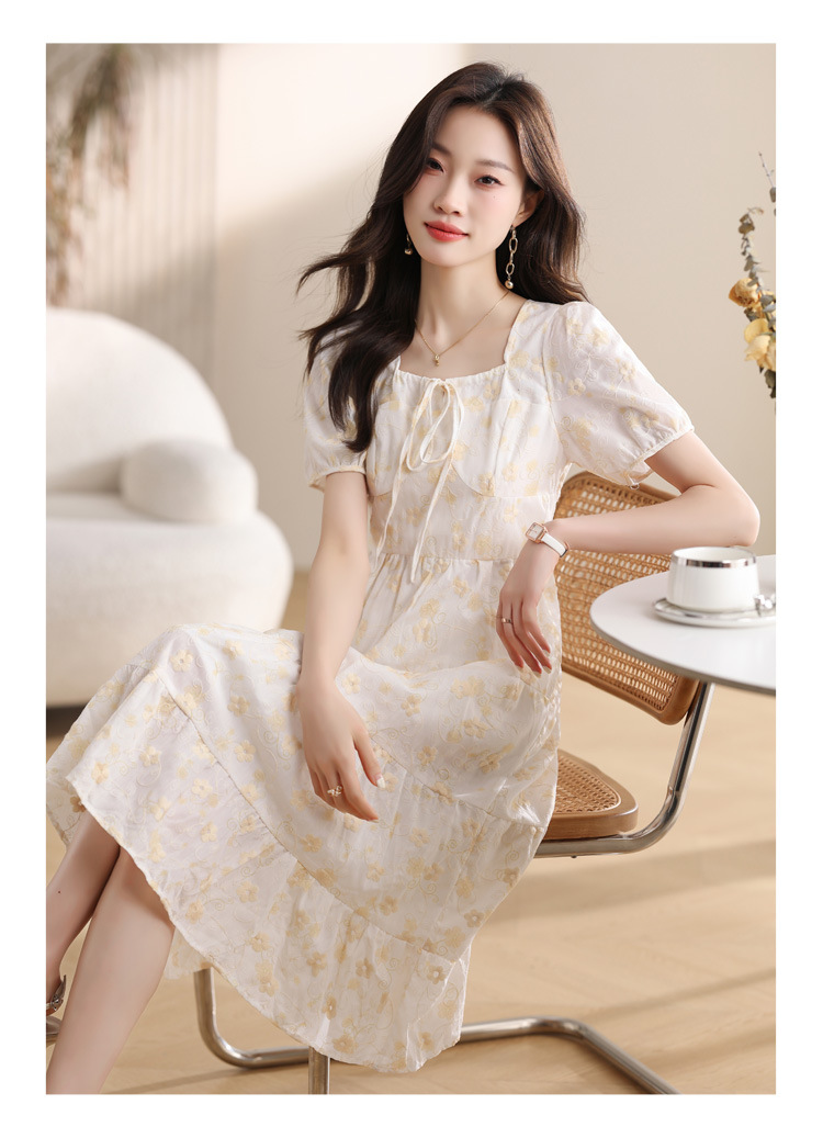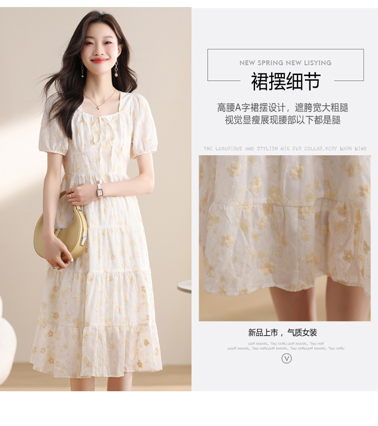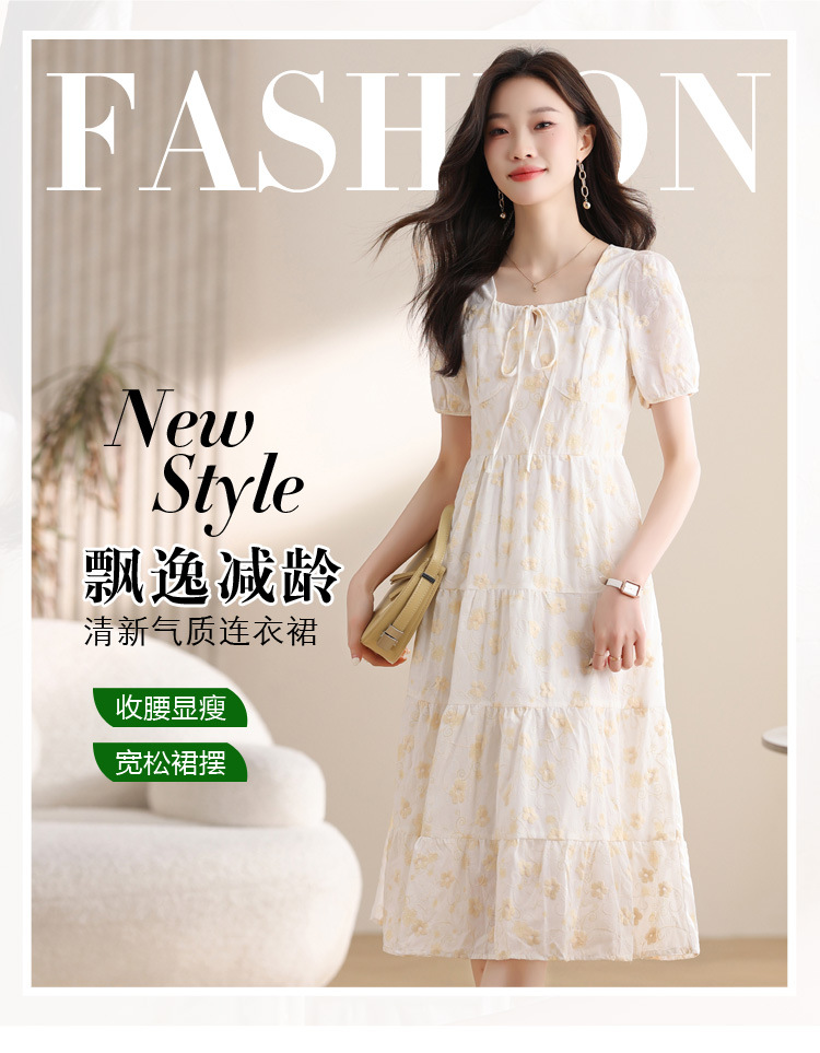 차 브레이크 프랑스 스타일 화이트 플로랄 원피스 어린이 여름 새로운 스타일 질감 허리 작은 남성스토어 가기