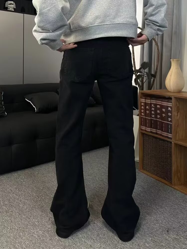 한국 스타일 거리 슬리밍 클렌핏 약간의 검은 청바지 남성용 간단한 패션 바이브 캐주얼 스트레이트 롱 팬츠