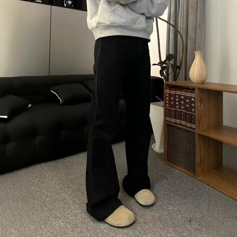 한국 스타일 거리 슬리밍 클렌핏 약간의 검은 청바지 남성용 간단한 패션 바이브 캐주얼 스트레이트 롱 팬츠스토어 가기