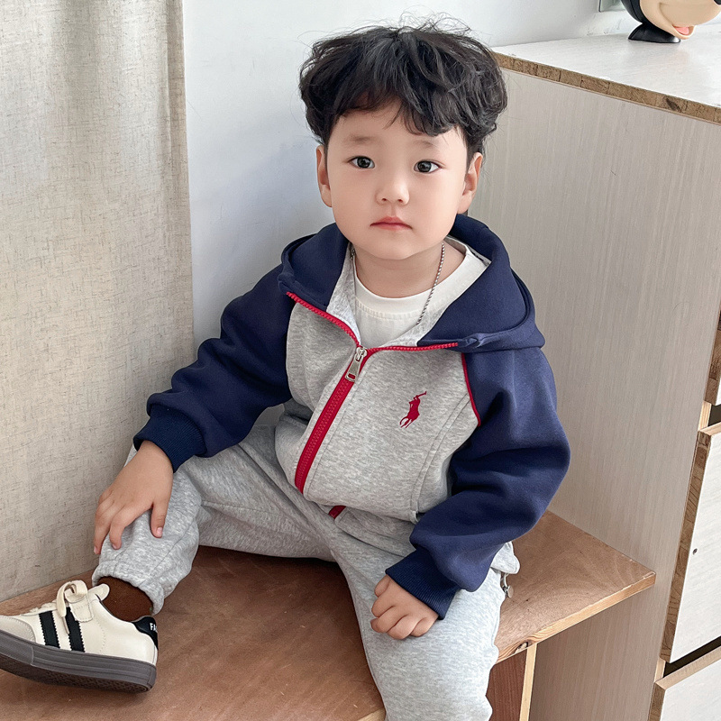 소년 봄 옷 세트 2025 봄 새로운 어린이 아기 옷 소년 후드 땀 스포츠 투피스 유행 세트
