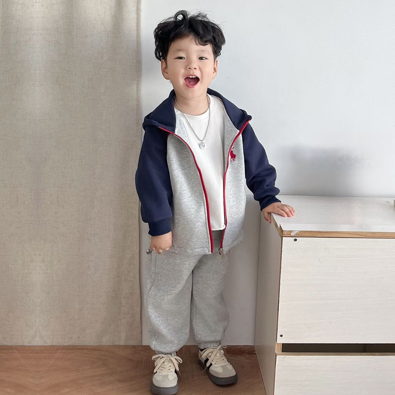 • 그레이 쓰리피스 스웨트셔츠 세트 - [컷홀 티셔츠] 봄, 가을 스타일
