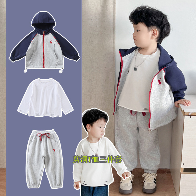 소년 봄 옷 세트 2025 봄 새로운 어린이 아기 옷 소년 후드 땀 스포츠 투피스 유행 세트스토어 가기