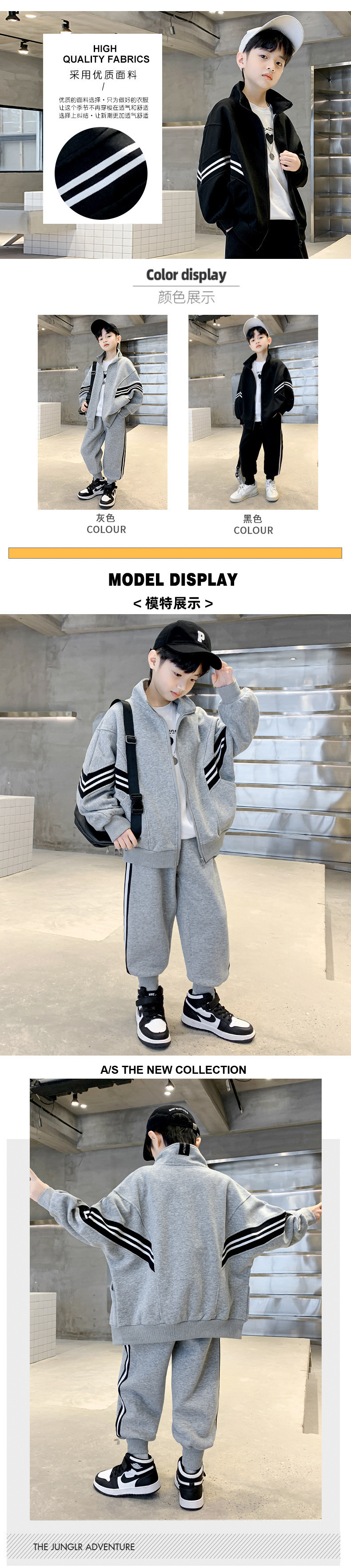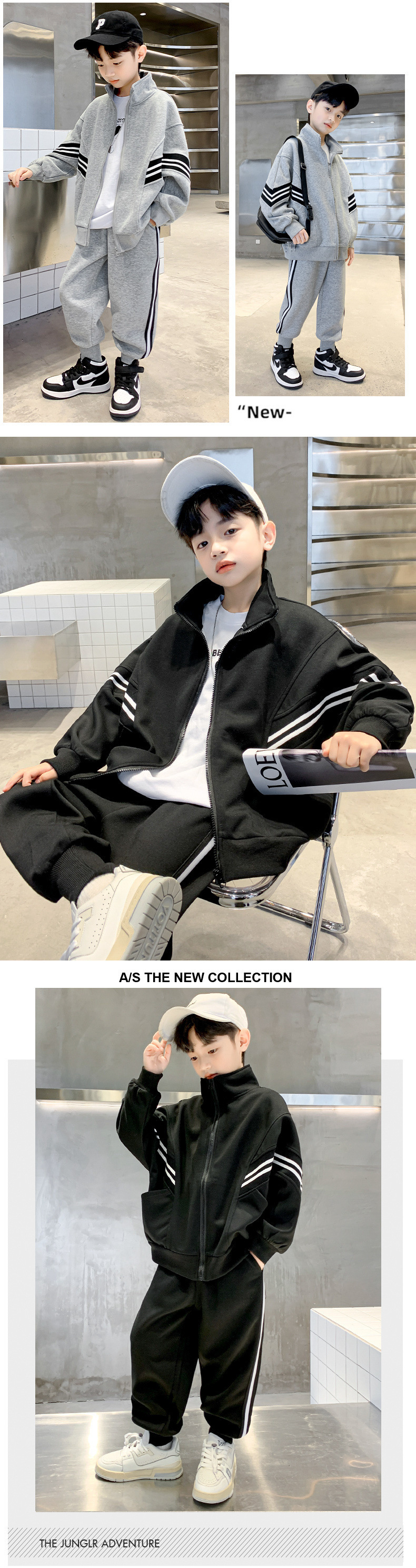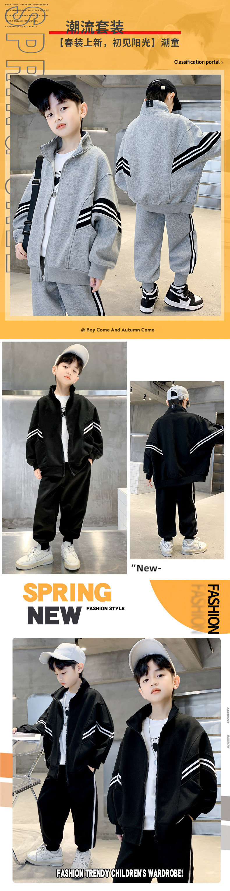 아동복 봄 소년 코트 2025 새로운 도착 중다 어린이 외국인 잘 생긴 스포츠 소년의 봄과 가을 운동복 2 피스 세트스토어 가기