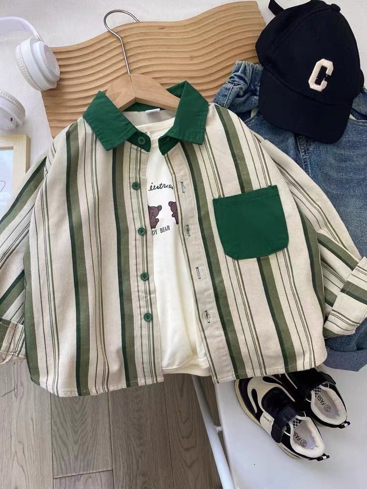 소년 셔츠 코트 2025 년 봄 가을 새 어린이 셔츠 카디건 초가을 소년 가을 옷 한국식 중년 어린이