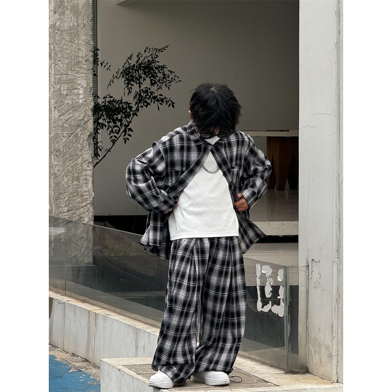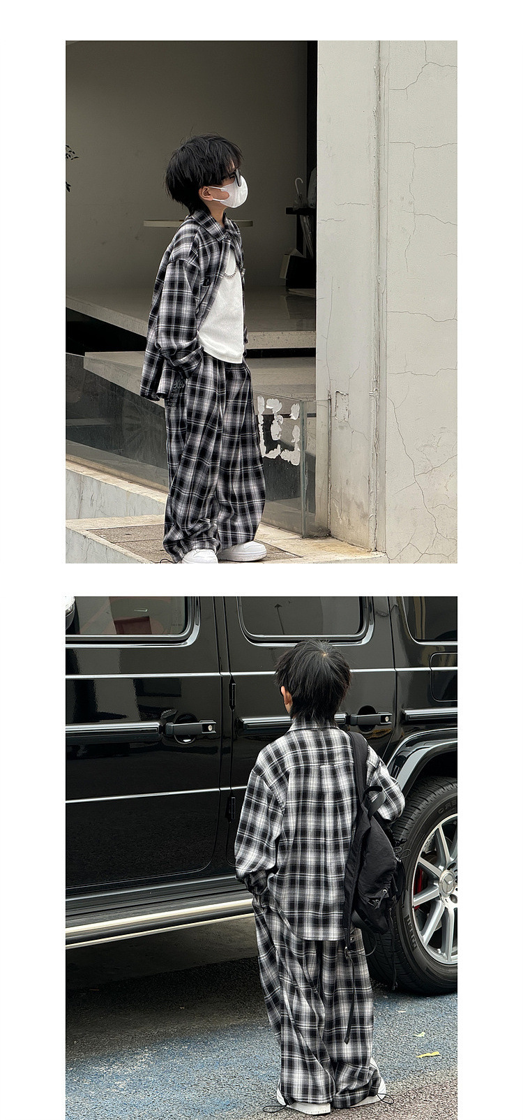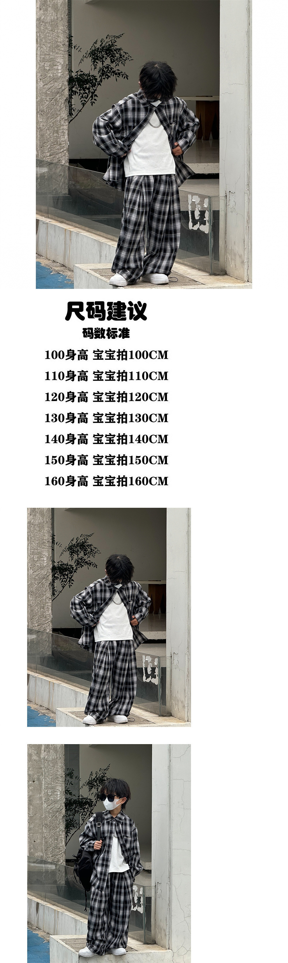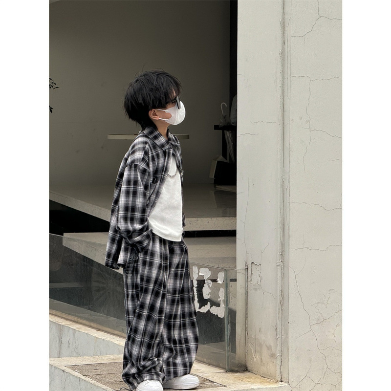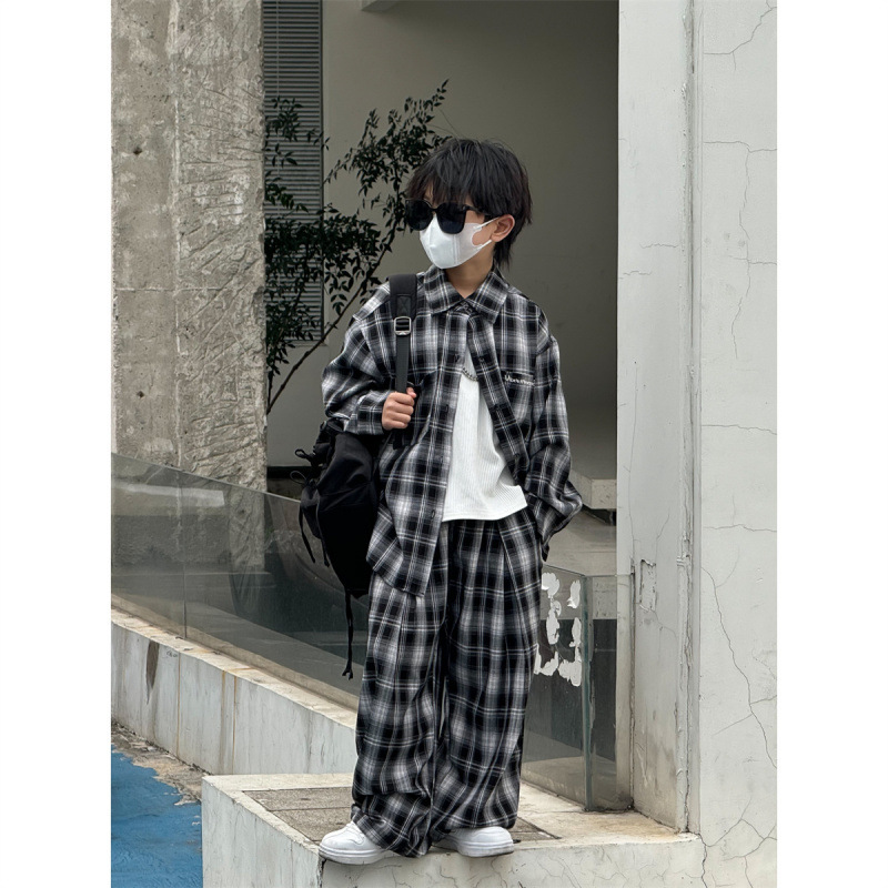 소년 시원한 복고풍 격자 무늬 투피스 2025 년 새 올매치 한국 패션 스포츠 세트 새끼들스토어 가기