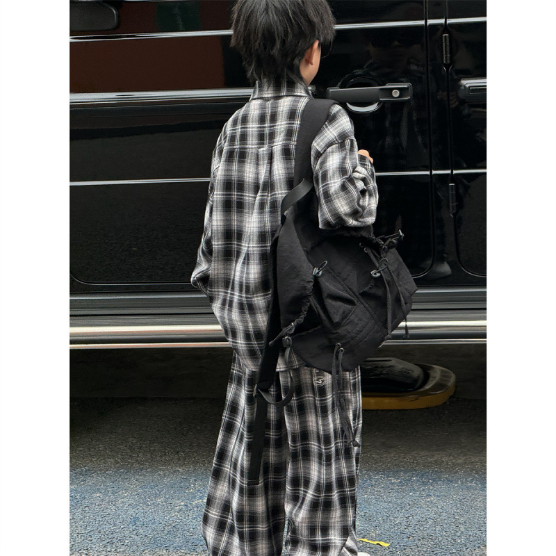 소년 시원한 복고풍 격자 무늬 투피스 2025 년 새 올매치 한국 패션 스포츠 세트 새끼들