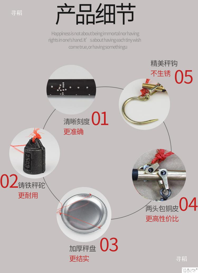 5公斤(10市斤)铁钮,杆子长度35厘米,砣250克,盘子直径22厘米。