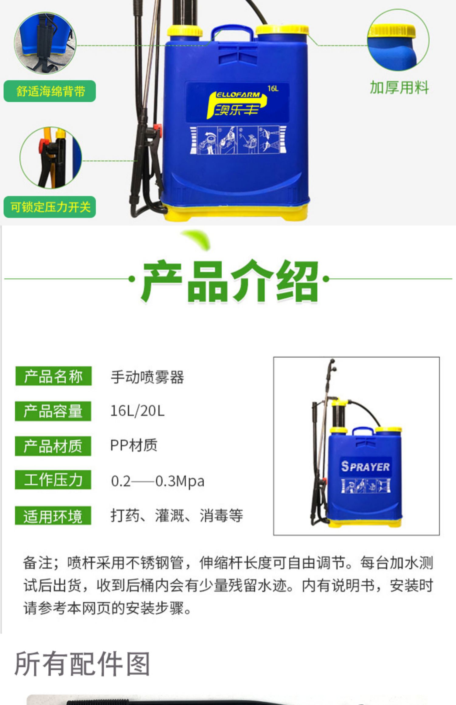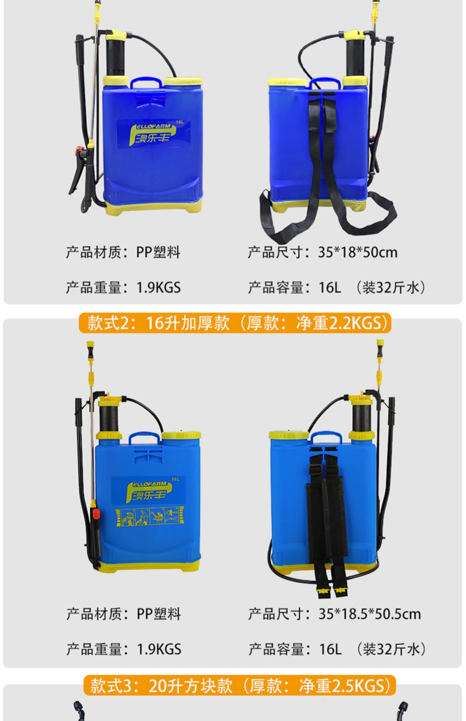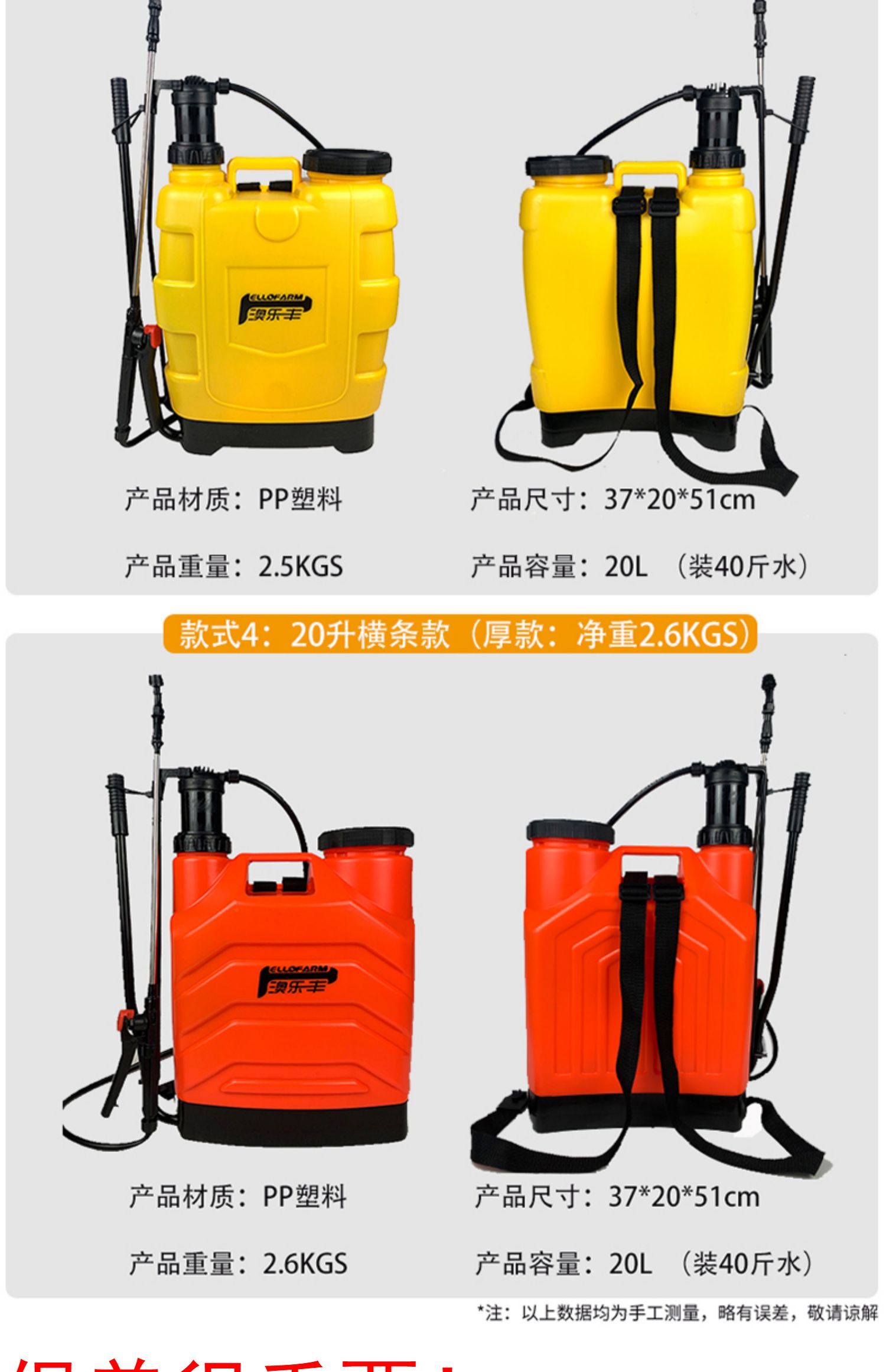 농업 수동 살포 기계 고압 배낭 분무기 급수 냄비 과일 나무 소독 농약 전기 분무기스토어 가기