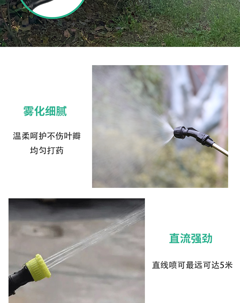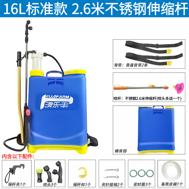 • 16리터 모델에는 2.6m개의 매우 긴 텔레스코픽 폴이 장착되어 있습니다.