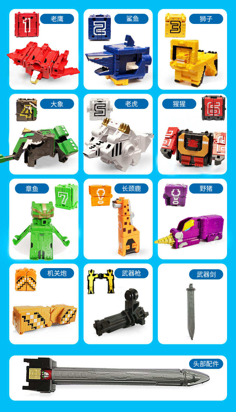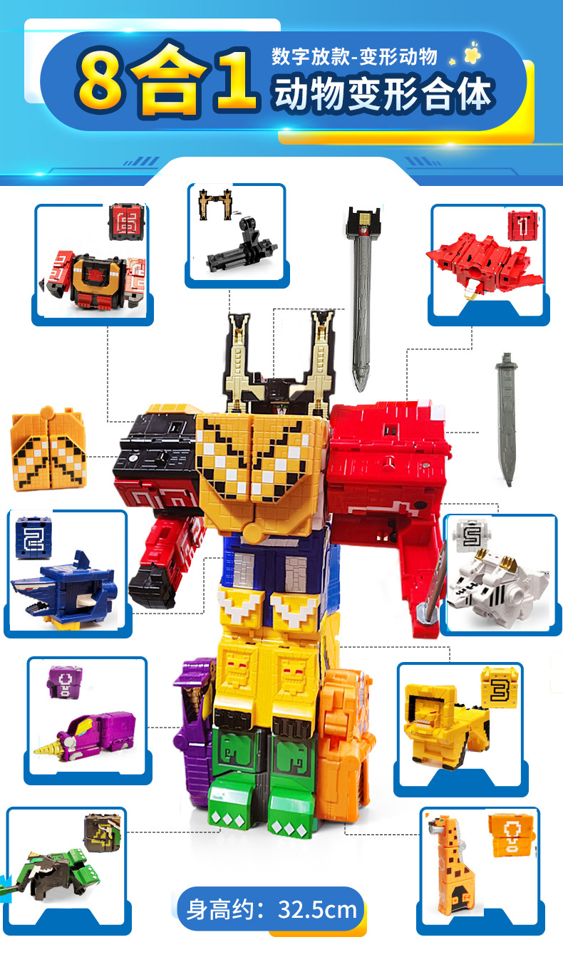 광장 디지털 변형 백살 야수 왕 동물 팀 맞는 로봇 메카 조합 세트 소년 교육 장난감스토어 가기