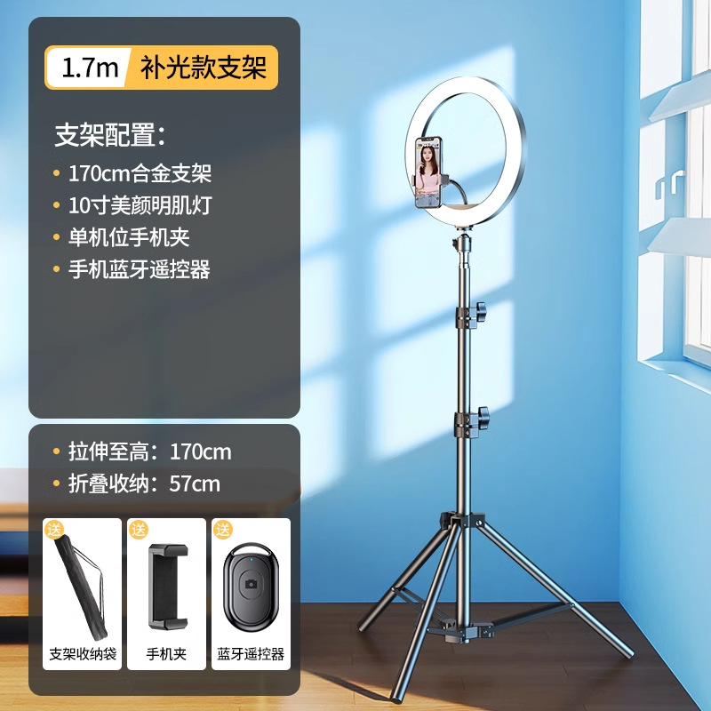 • 1.7m [전문가급으로 더욱 안정적] 10inch개의 조명*단일 카메라+수납가방*셀카.