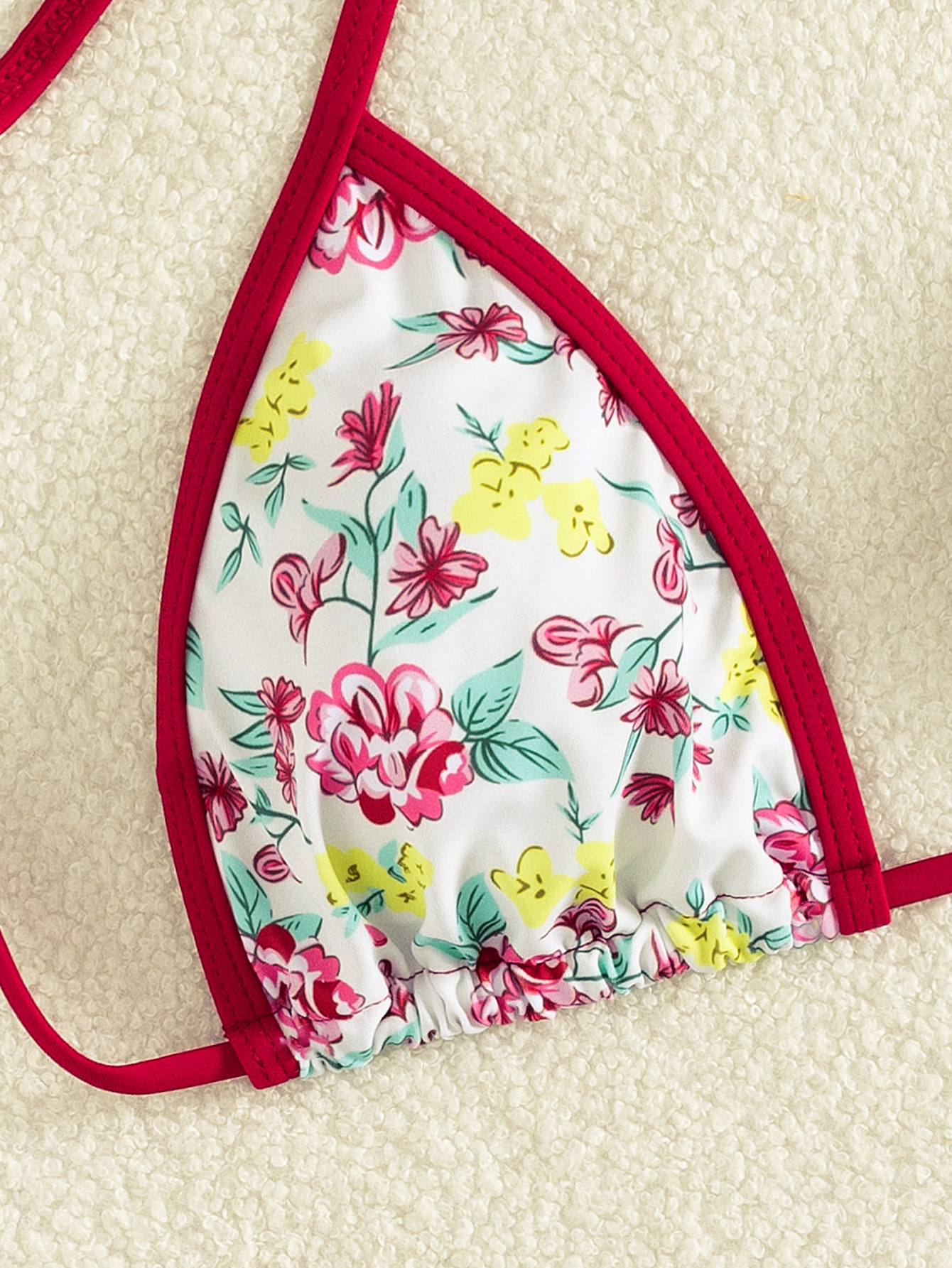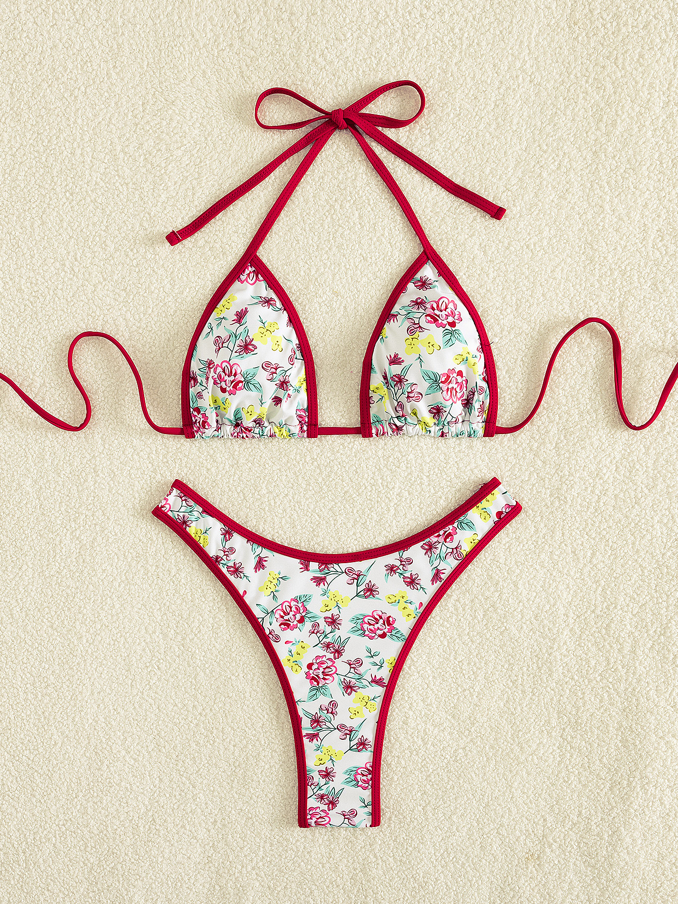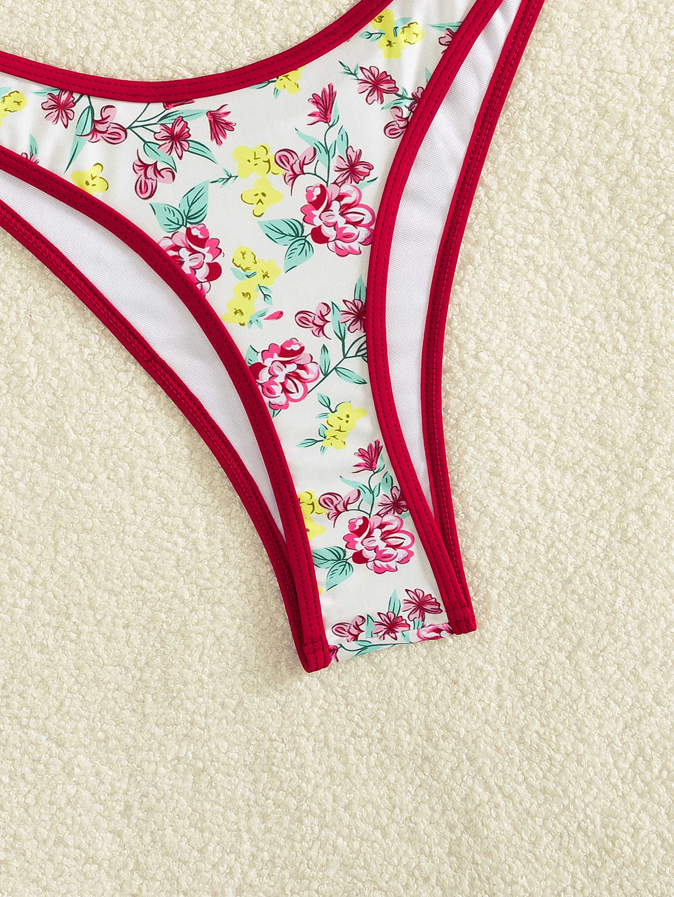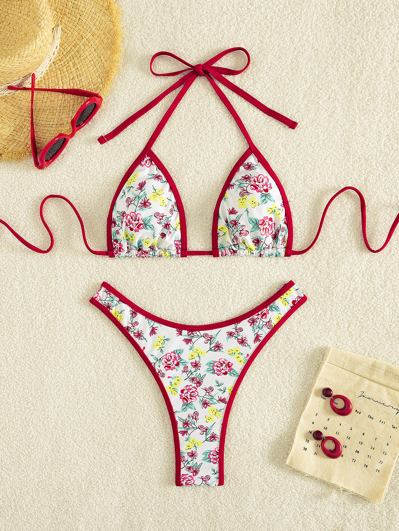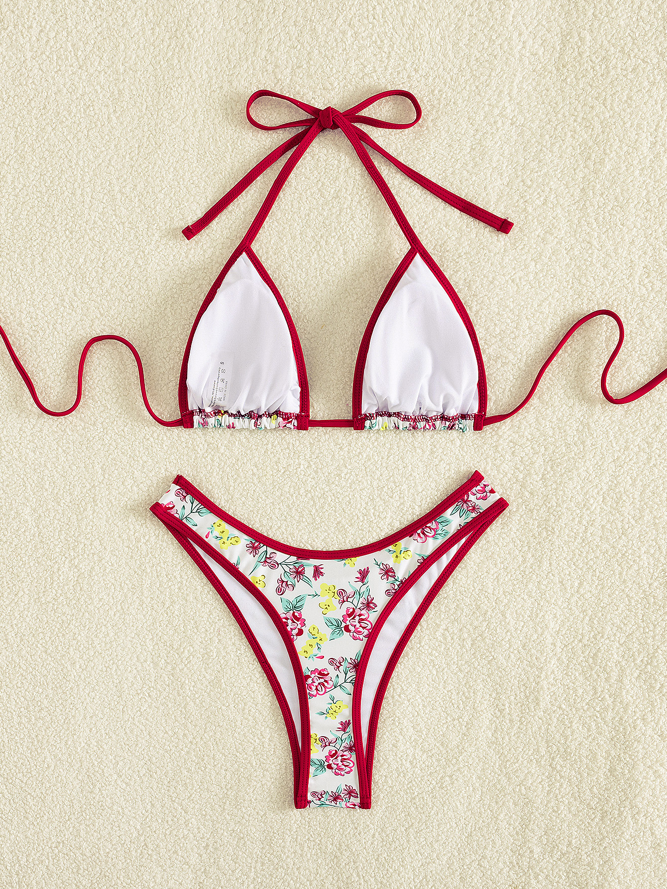 2025 새로운 국경 유럽 및 미국 꽃 분할 여성 비키니 수영복 비키니 섹시 백리스 레이스 업 수영복