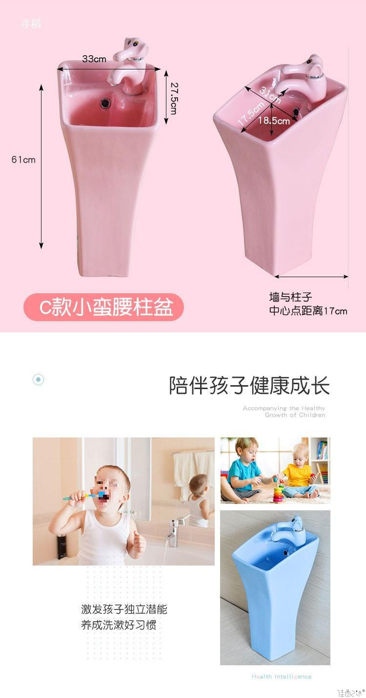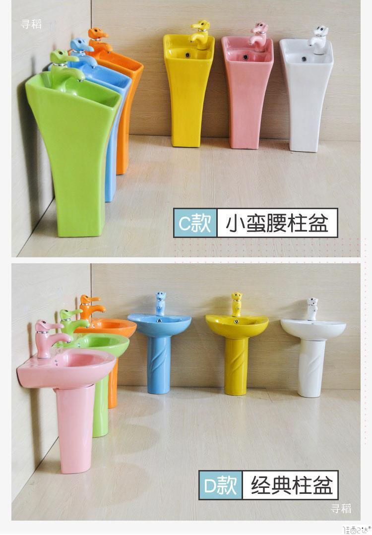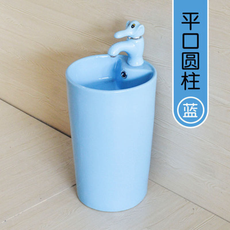 유치원 컬러 세라믹 기둥 분지 어린이 욕실 통합 워시 분지 만화 세탁기 야외 바닥 유형스토어 가기
