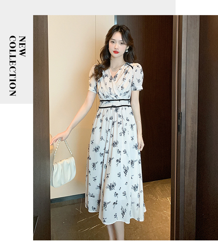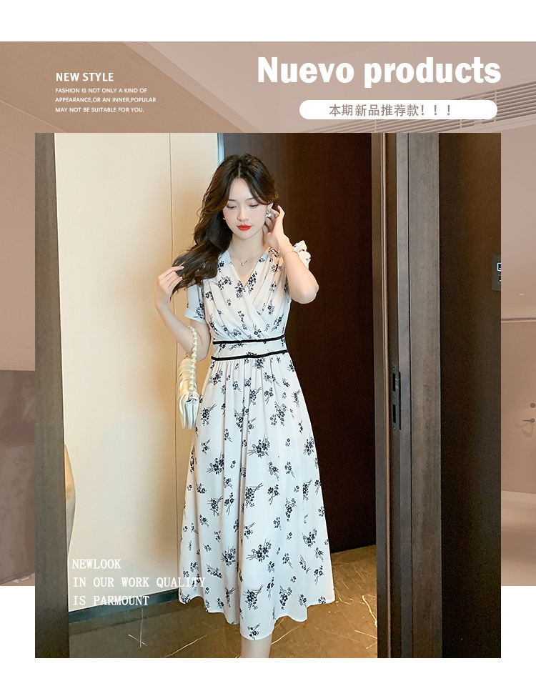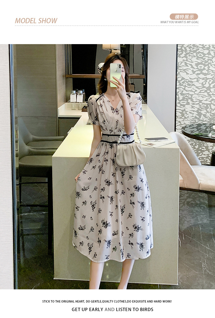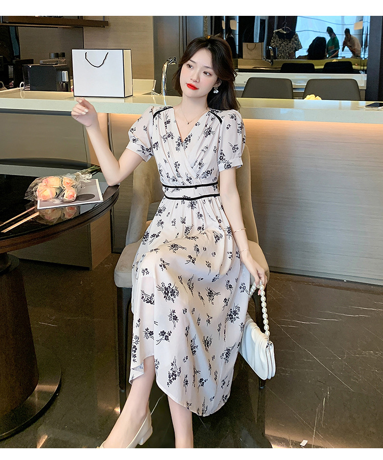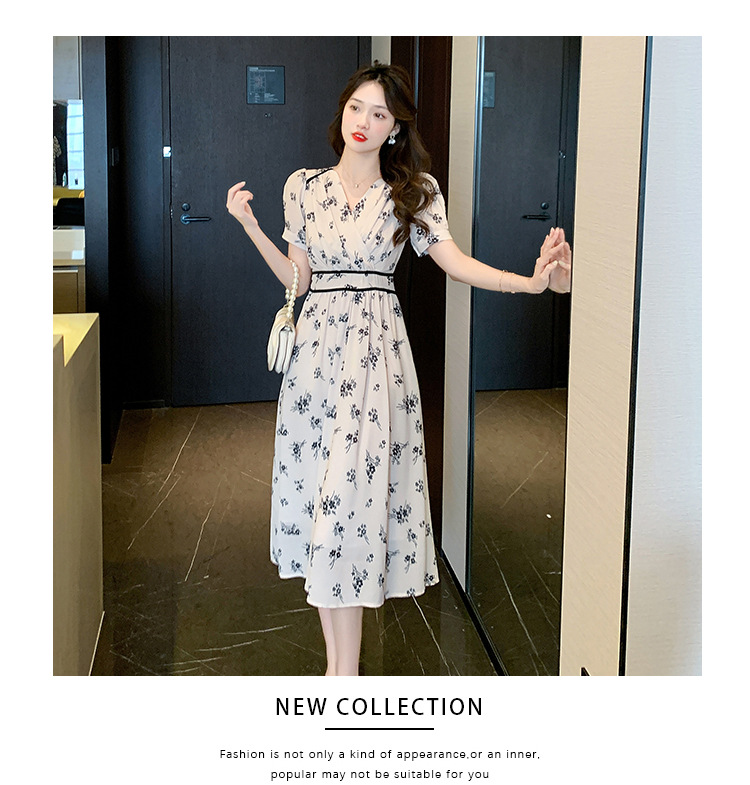 프랑스 복고풍 우아한 우아한 치마 V-Neck 궁전 스타일 소녀 시폰 프라이드 스트리트 원피스 새로운 여름 원피스스토어 가기