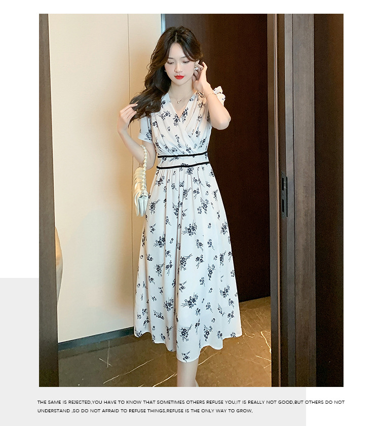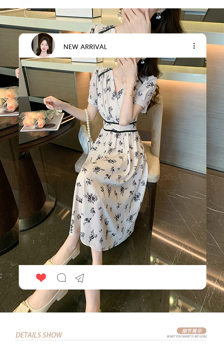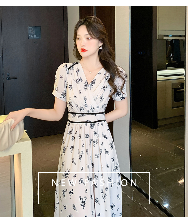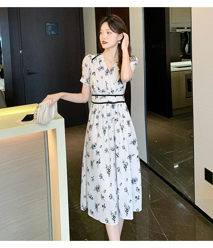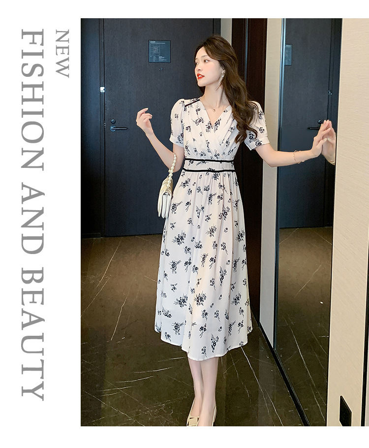 프랑스 복고풍 우아한 우아한 치마 V-Neck 궁전 스타일 소녀 시폰 프라이드 스트리트 원피스 새로운 여름 원피스스토어 가기