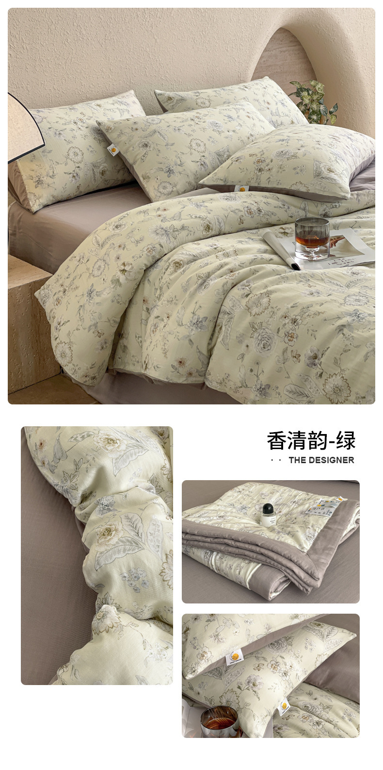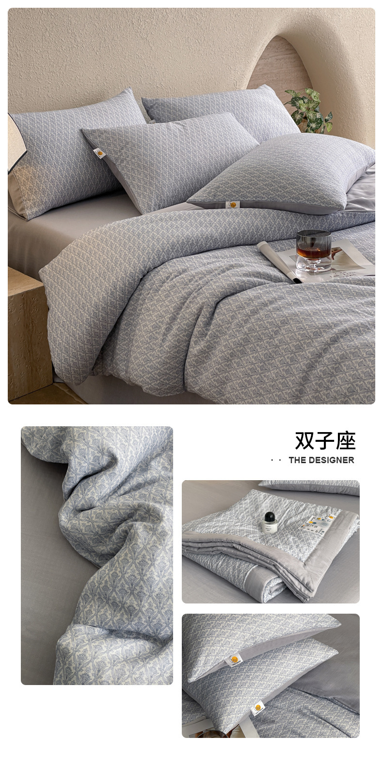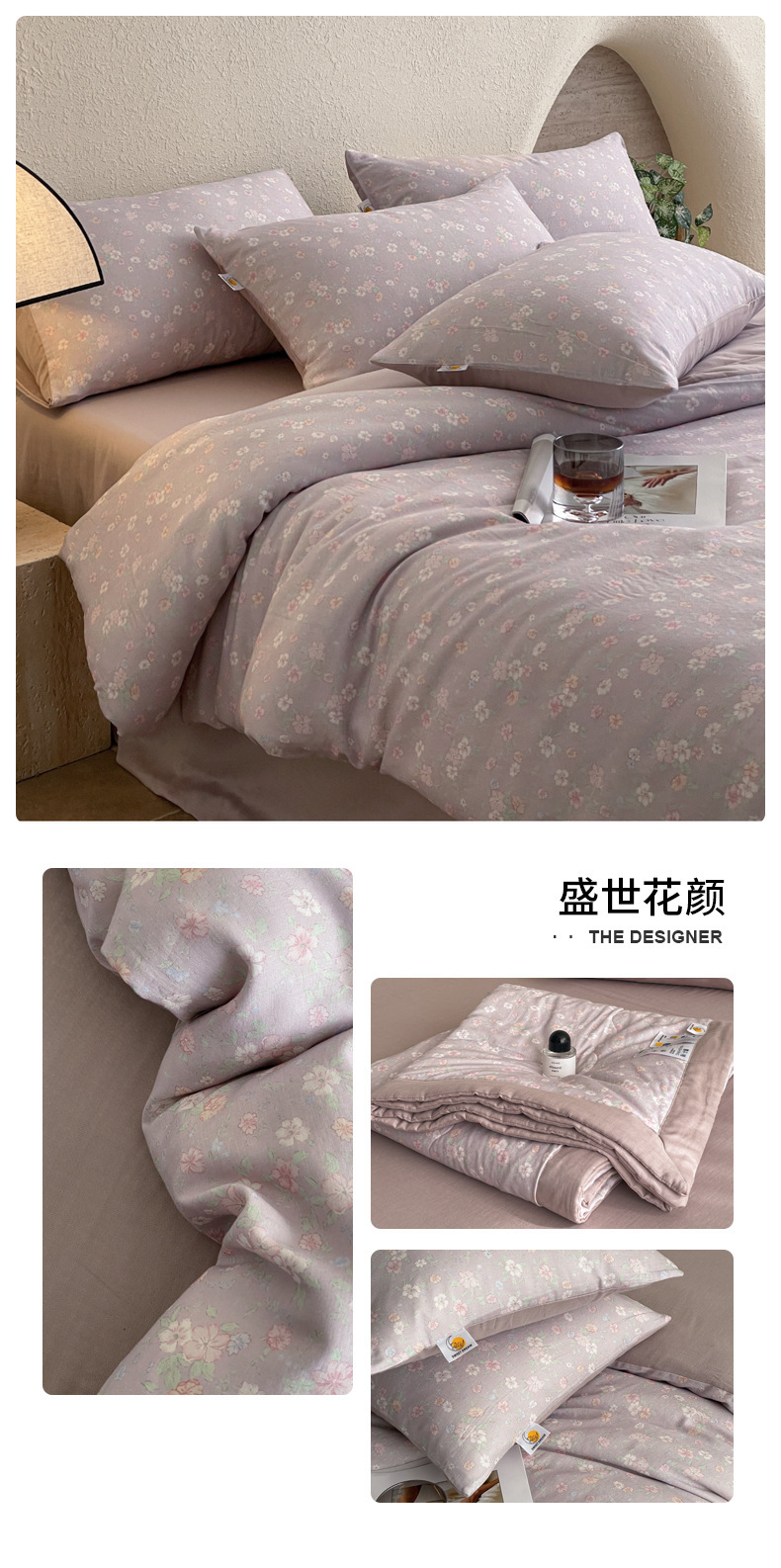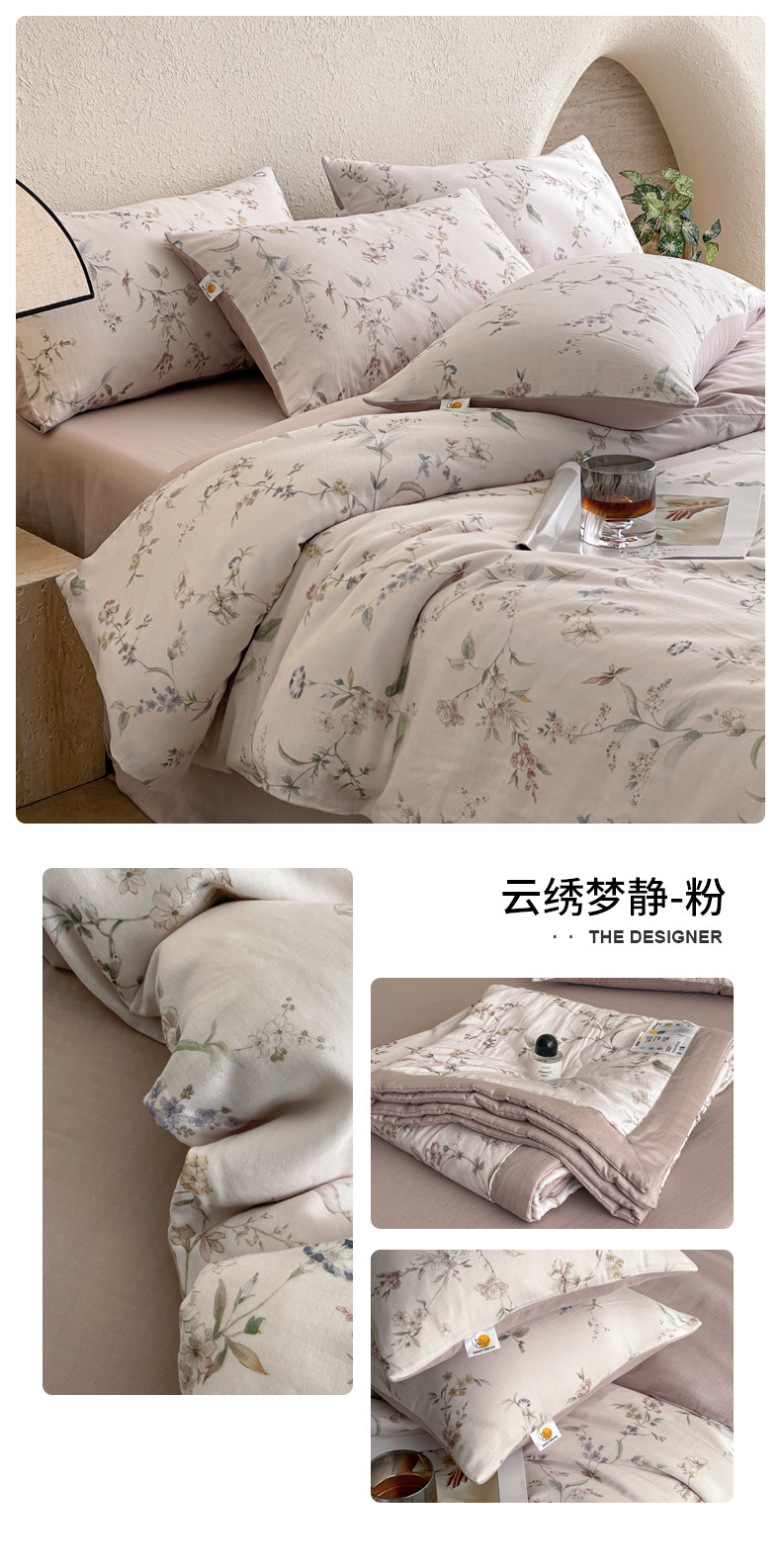 Lyocell 코튼 신선한 더블 레이어 원사 4 피스 침구 퀼트 커버 시트 봄과 여름 하이 엔드 마스터 침실