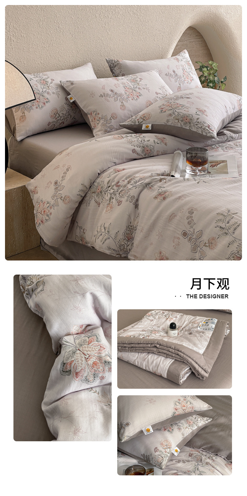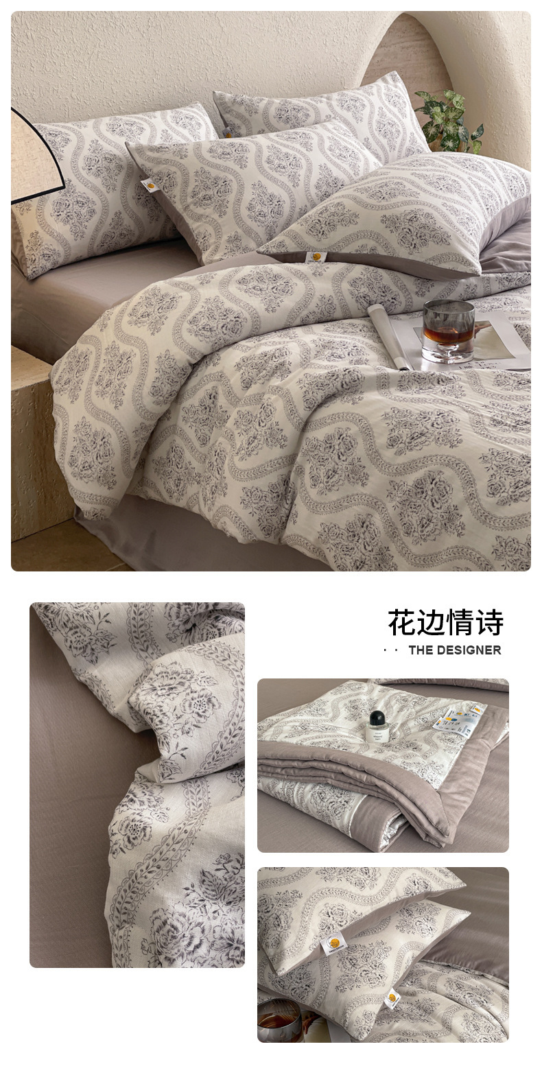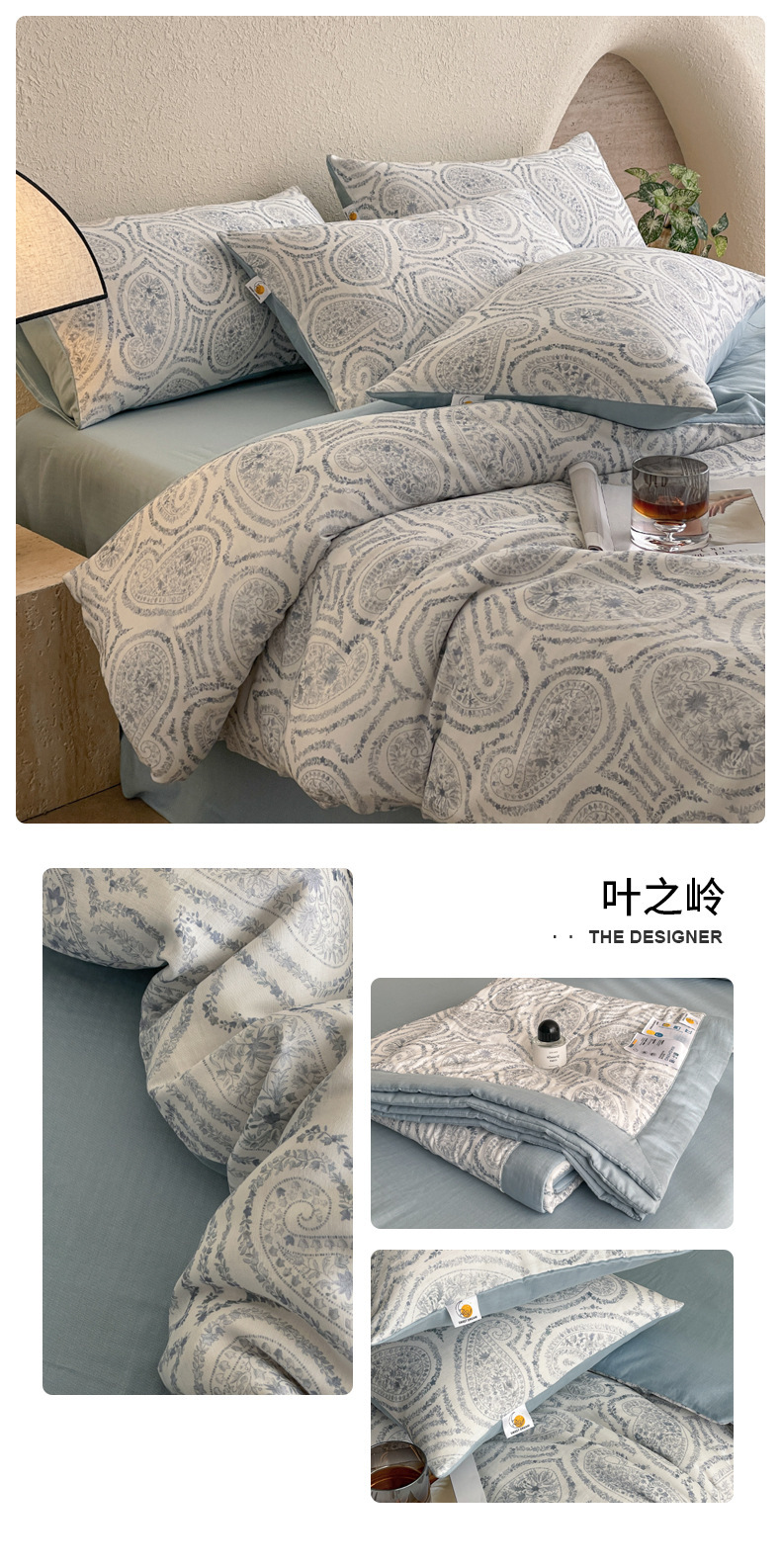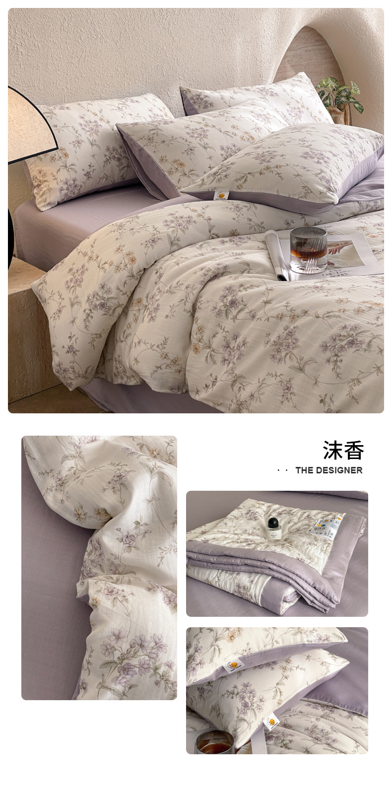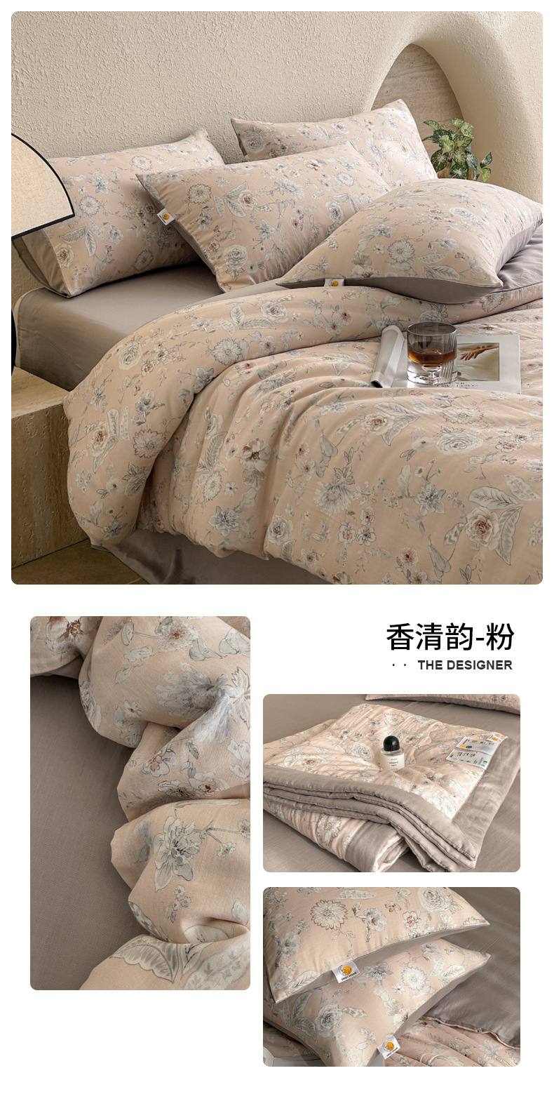 Lyocell 코튼 신선한 더블 레이어 원사 4 피스 침구 퀼트 커버 시트 봄과 여름 하이 엔드 마스터 침실