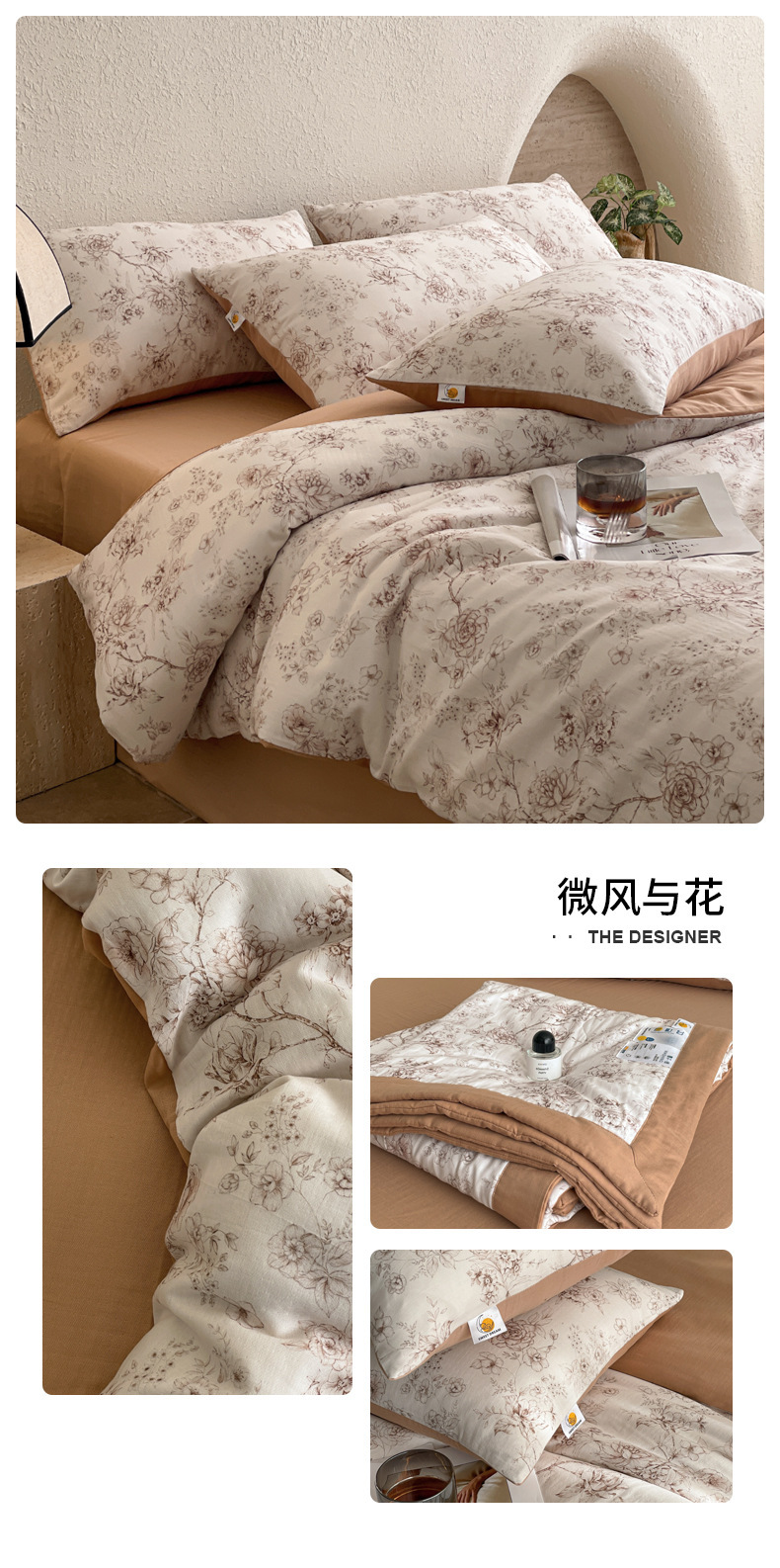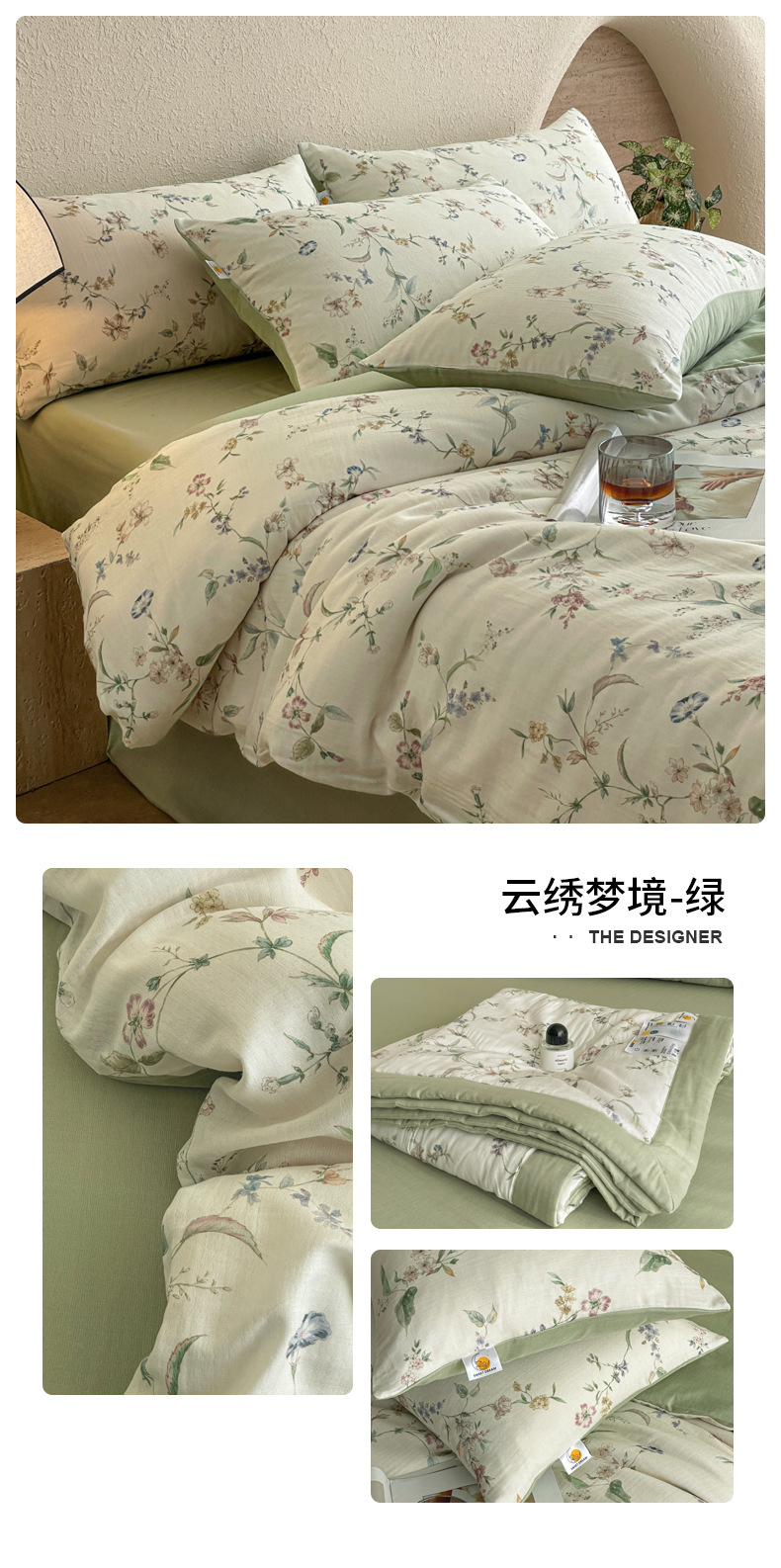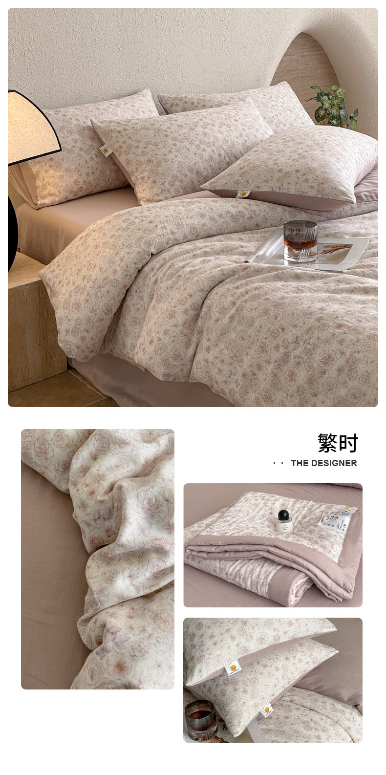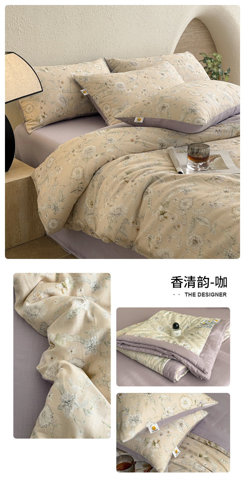 Lyocell 코튼 신선한 더블 레이어 원사 4 피스 침구 퀼트 커버 시트 봄과 여름 하이 엔드 마스터 침실