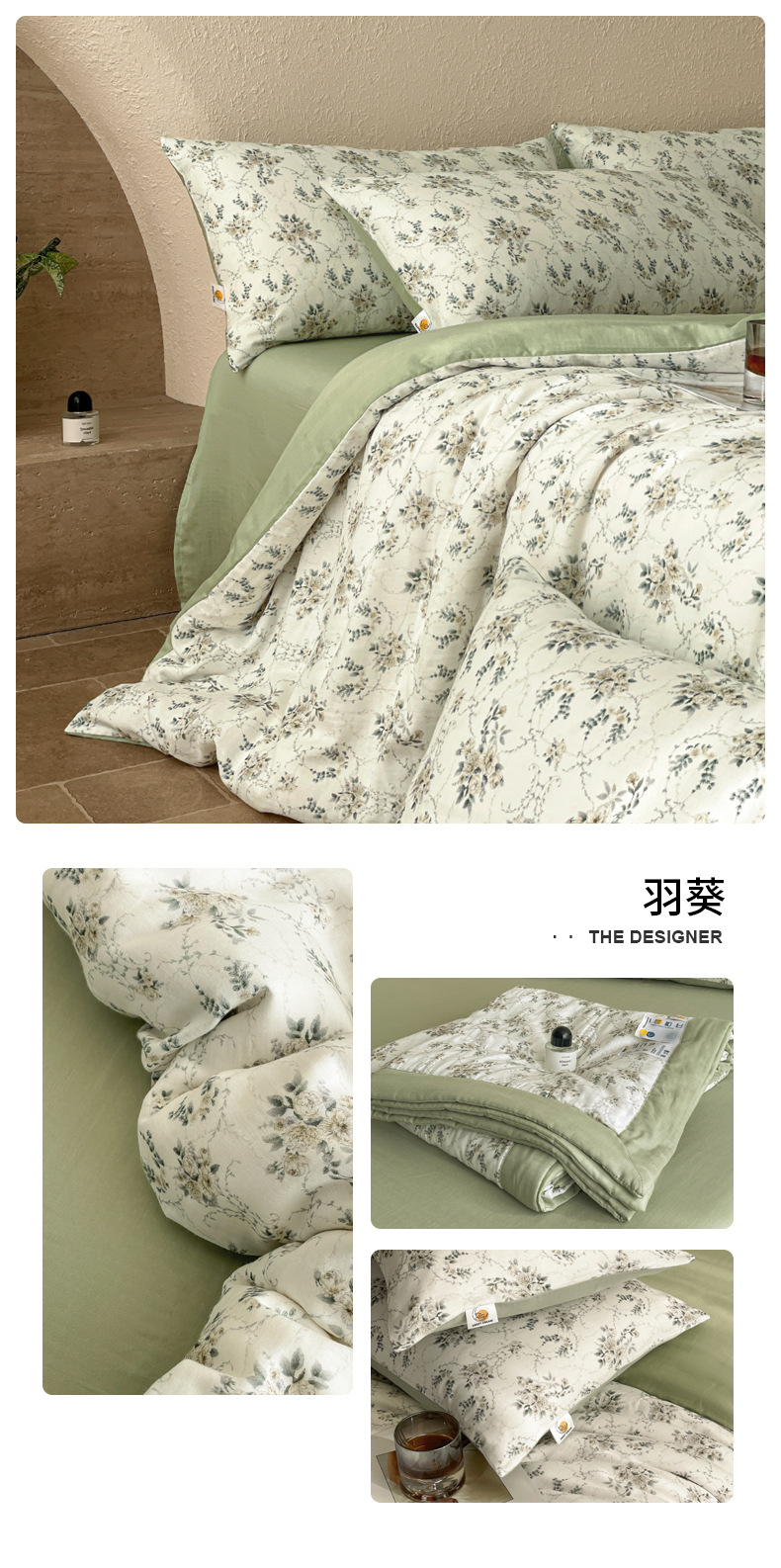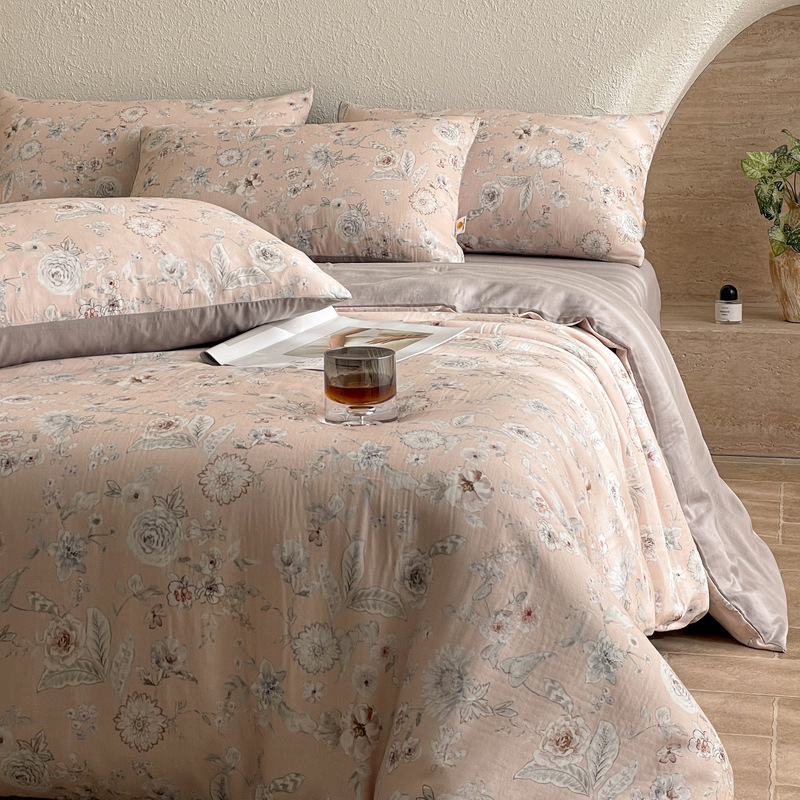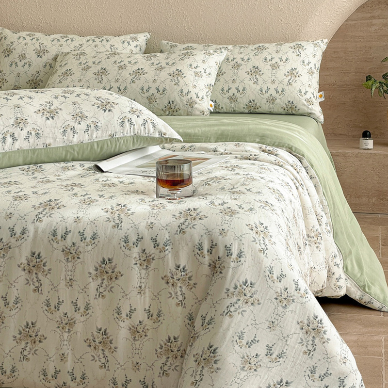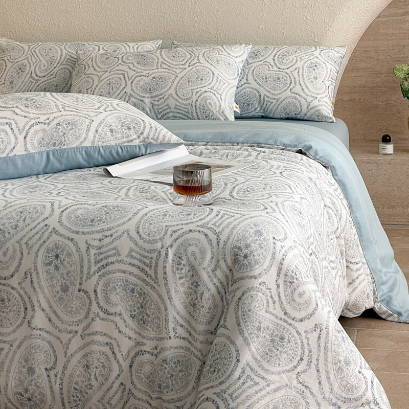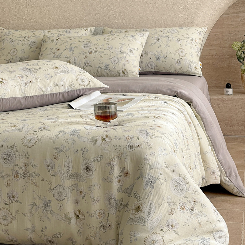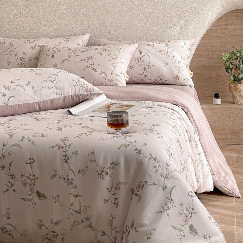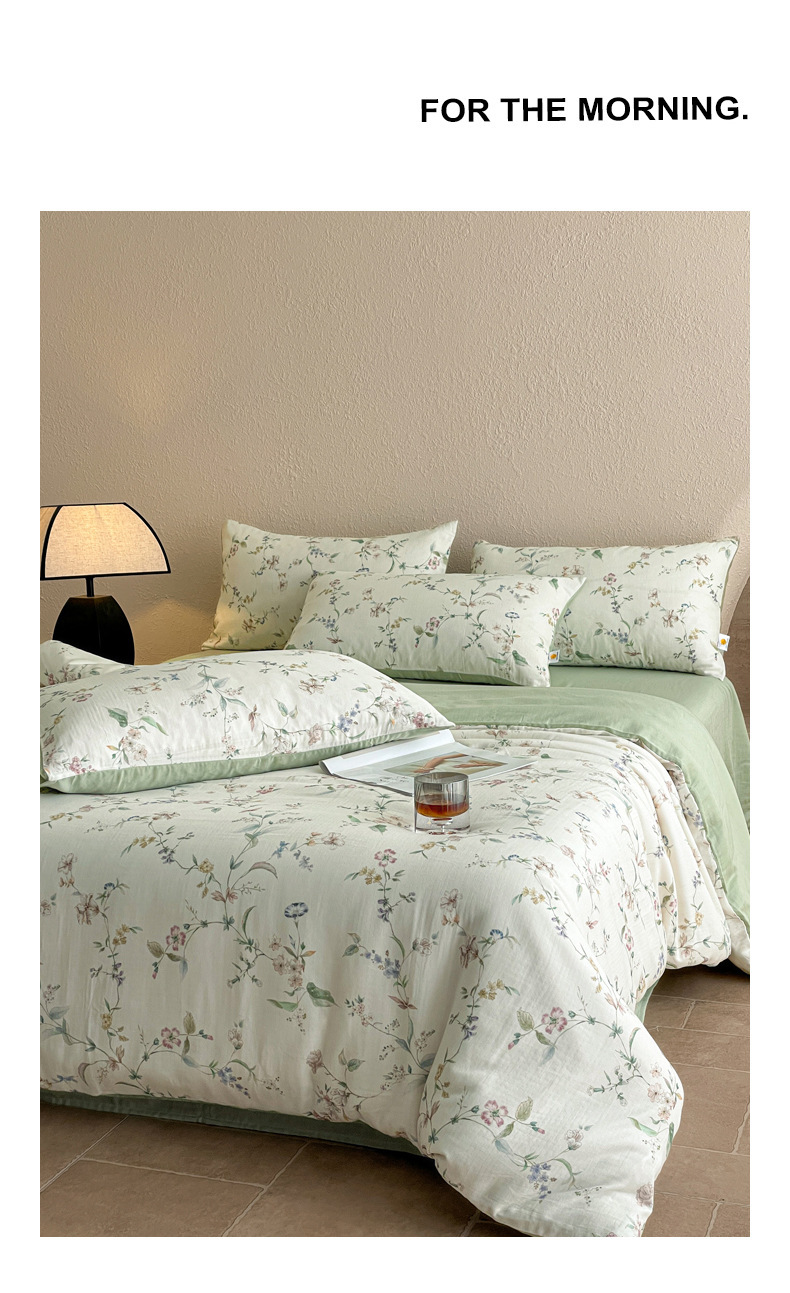 Lyocell 코튼 신선한 더블 레이어 원사 4 피스 침구 퀼트 커버 시트 봄과 여름 하이 엔드 마스터 침실