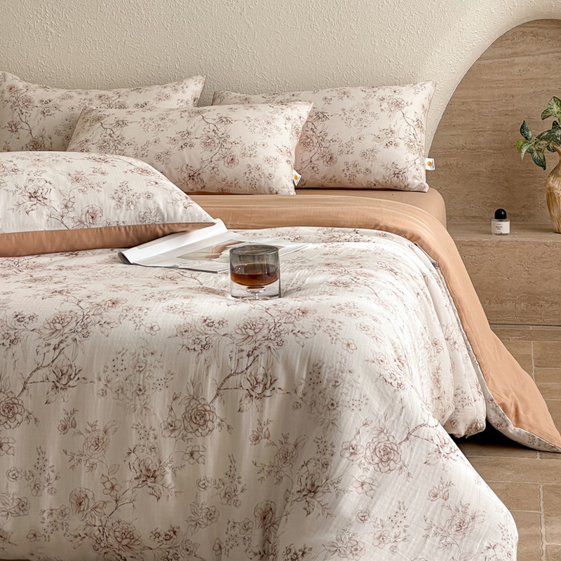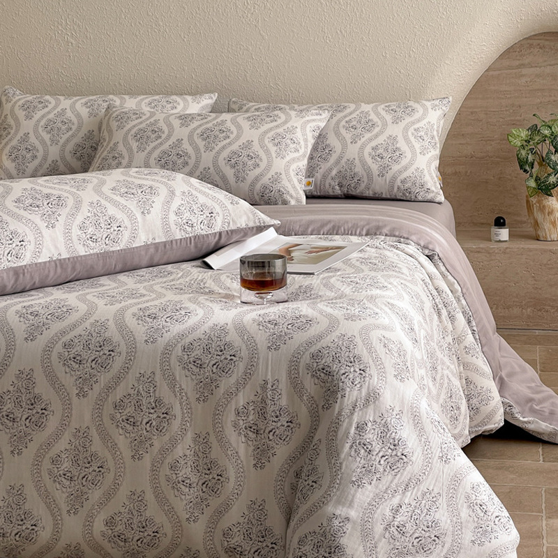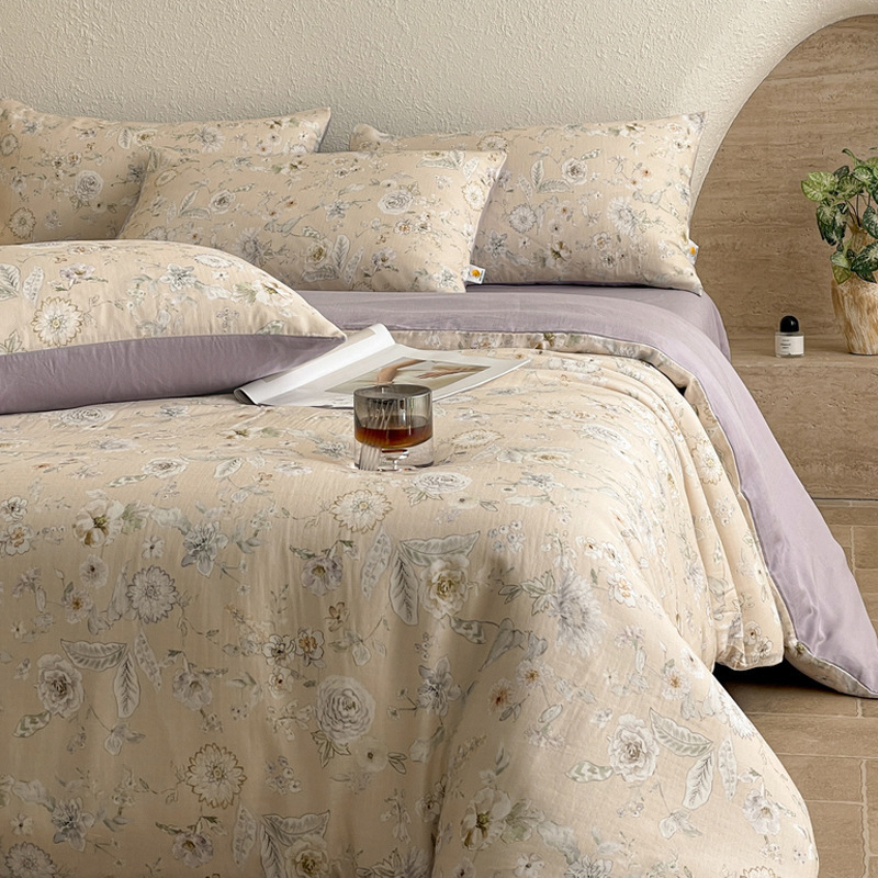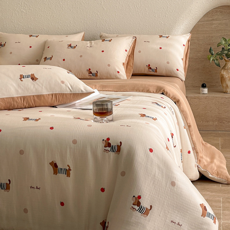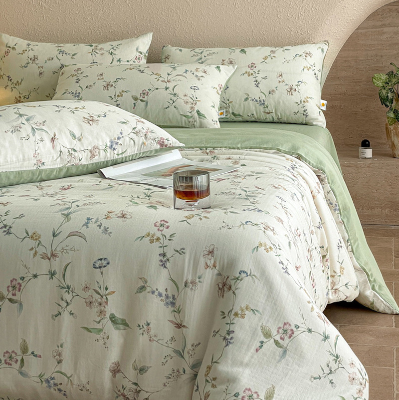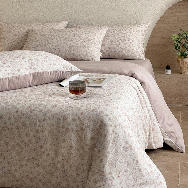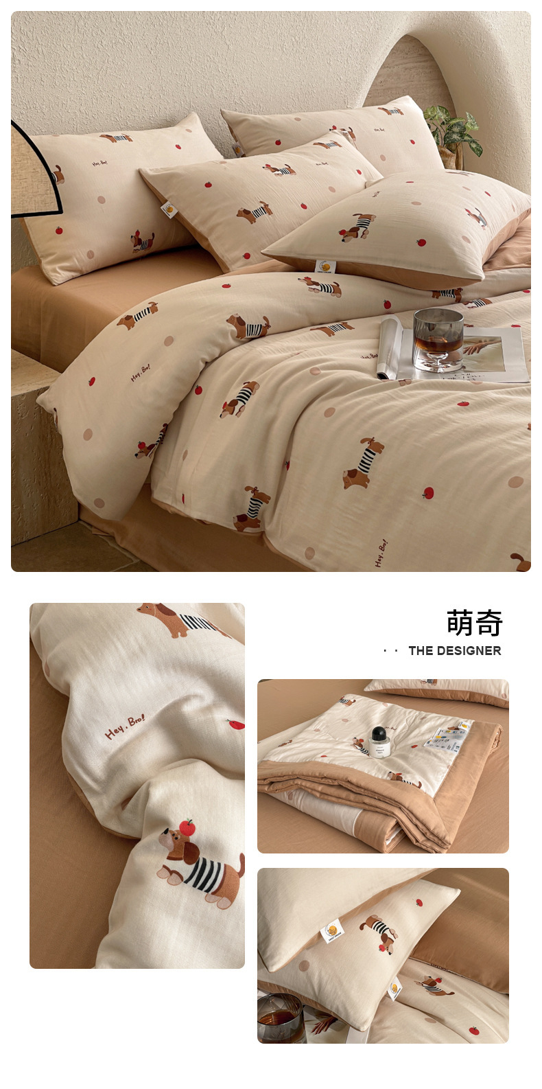 Lyocell 코튼 신선한 더블 레이어 원사 4 피스 침구 퀼트 커버 시트 봄과 여름 하이 엔드 마스터 침실