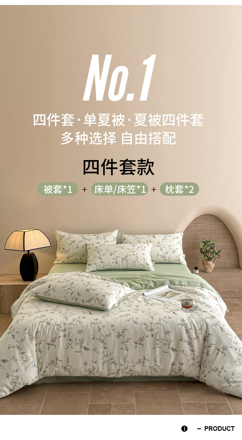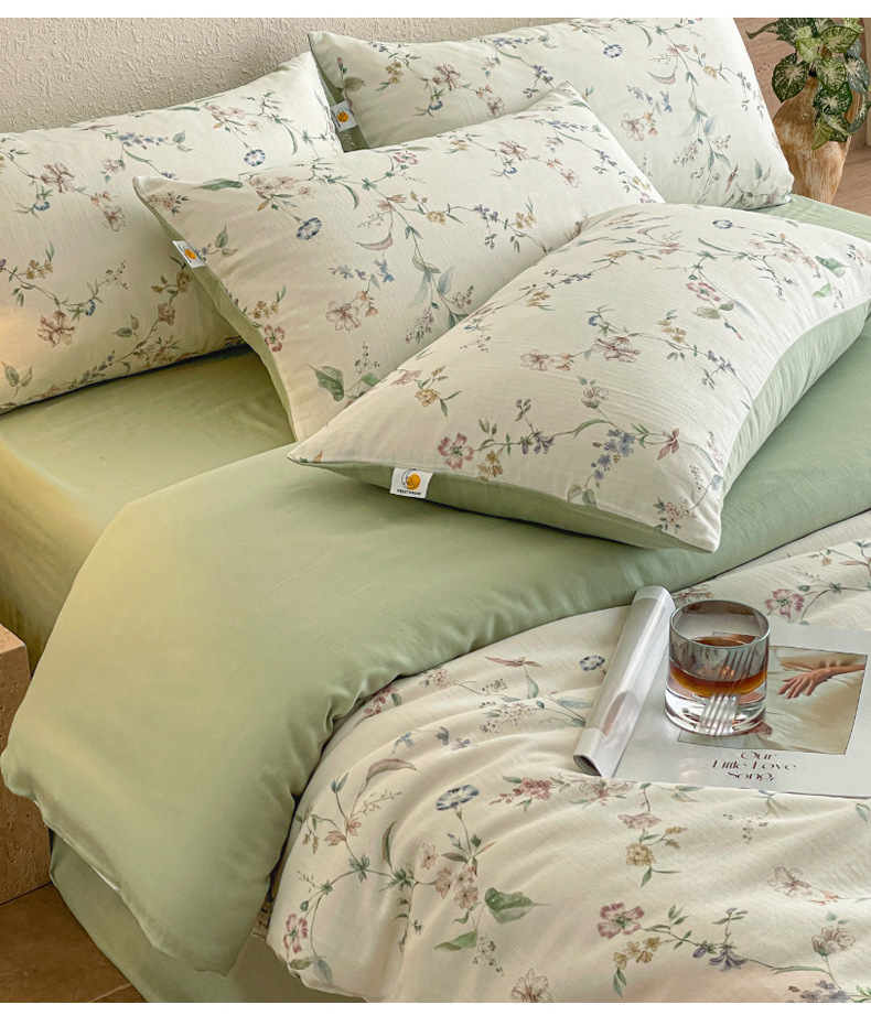 Lyocell 코튼 신선한 더블 레이어 원사 4 피스 침구 퀼트 커버 시트 봄과 여름 하이 엔드 마스터 침실스토어 가기