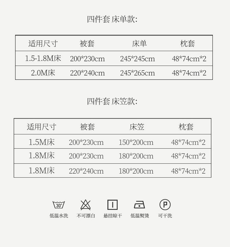 • 1.8m 침대 시트 4장 세트(이불커버 200*230)