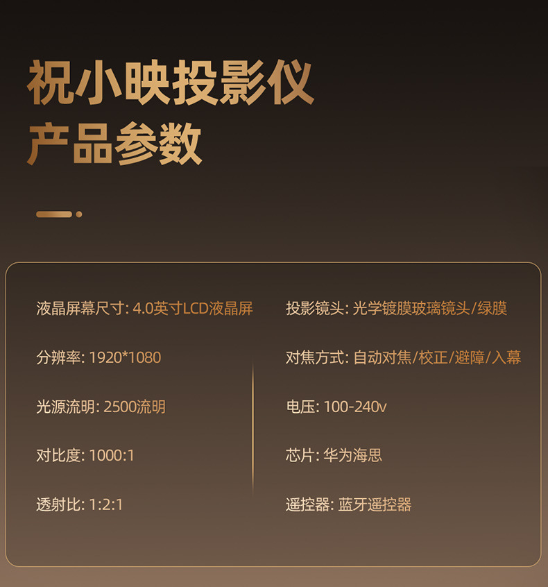 • 홈 버전[전자동 초점/4K 디코딩/블루투스/HDMI/USB 연결]