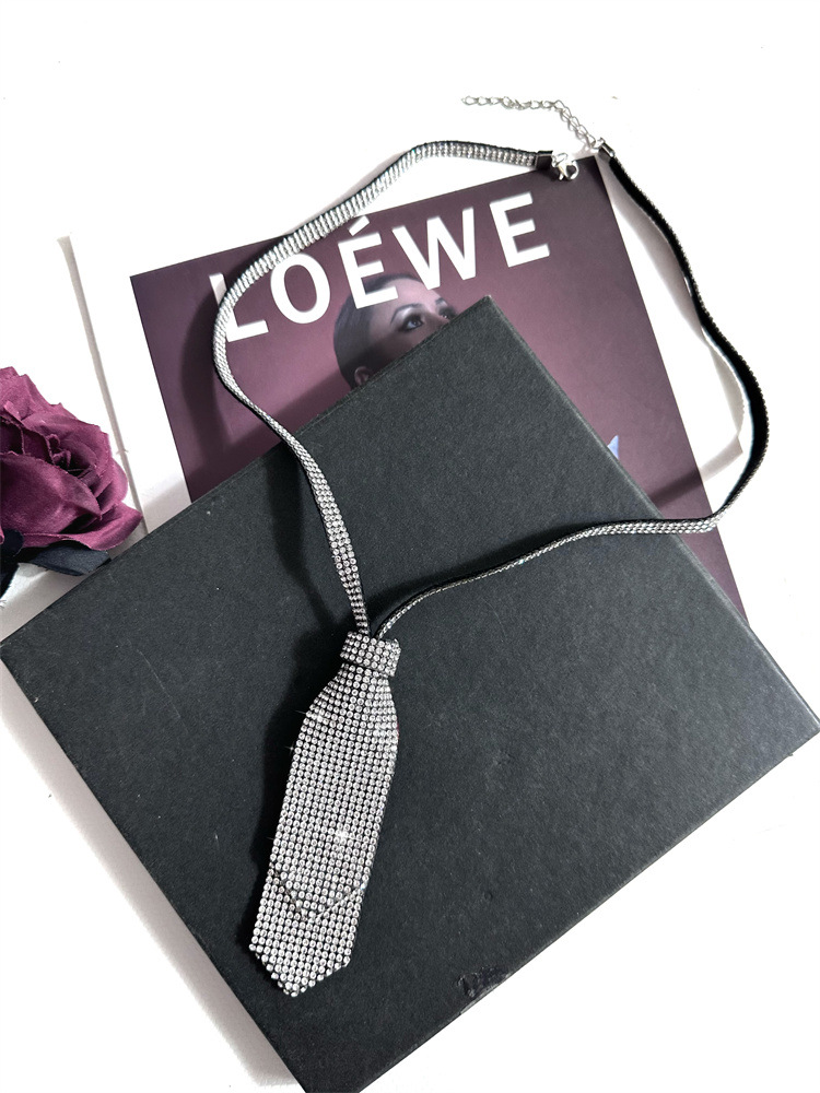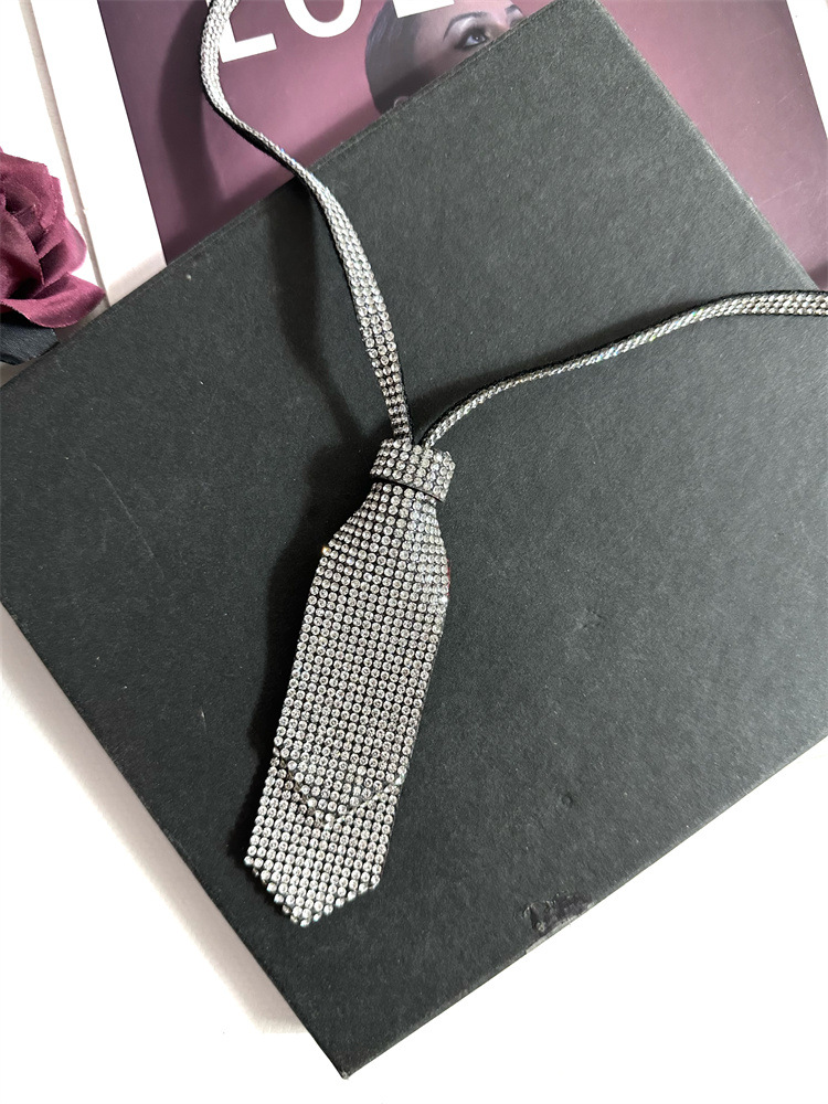 다이아몬드가 박힌 더블 레이어 작은 넥타이 jk 세트 학술 스타일 넥타이 밝은 다이아몬드 목걸이 여성 디스코 공연 여성 패션과 작은 향기로운 스타일