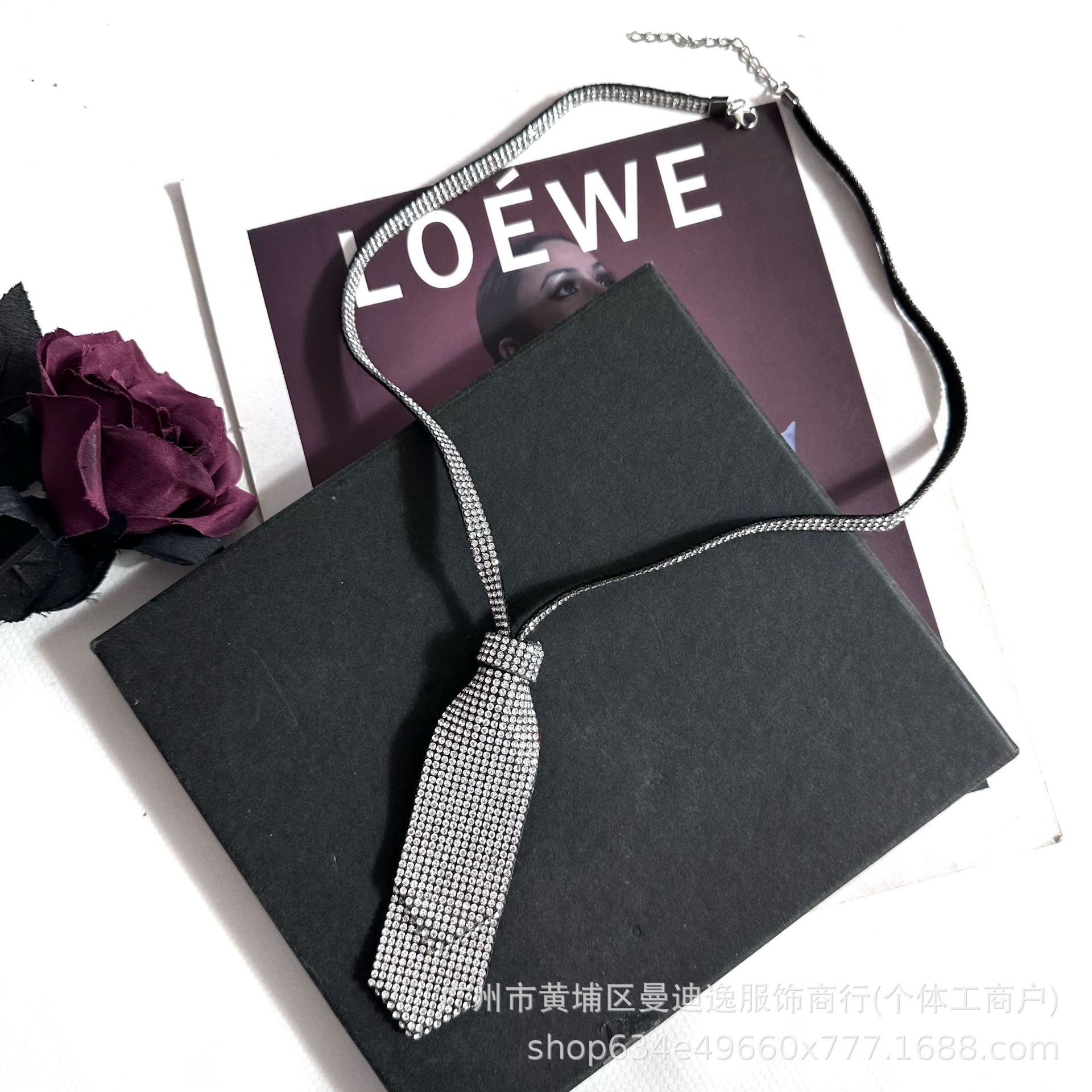 다이아몬드가 박힌 더블 레이어 작은 넥타이 jk 세트 학술 스타일 넥타이 밝은 다이아몬드 목걸이 여성 디스코 공연 여성 패션과 작은 향기로운 스타일스토어 가기