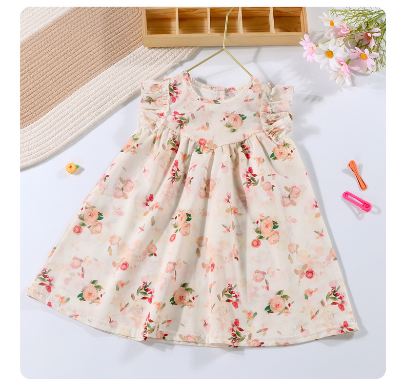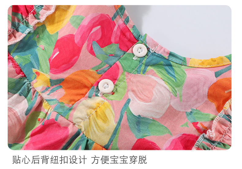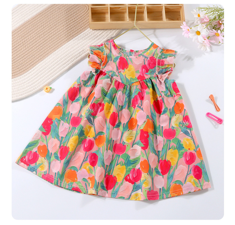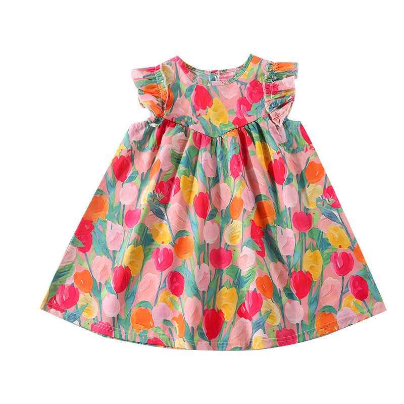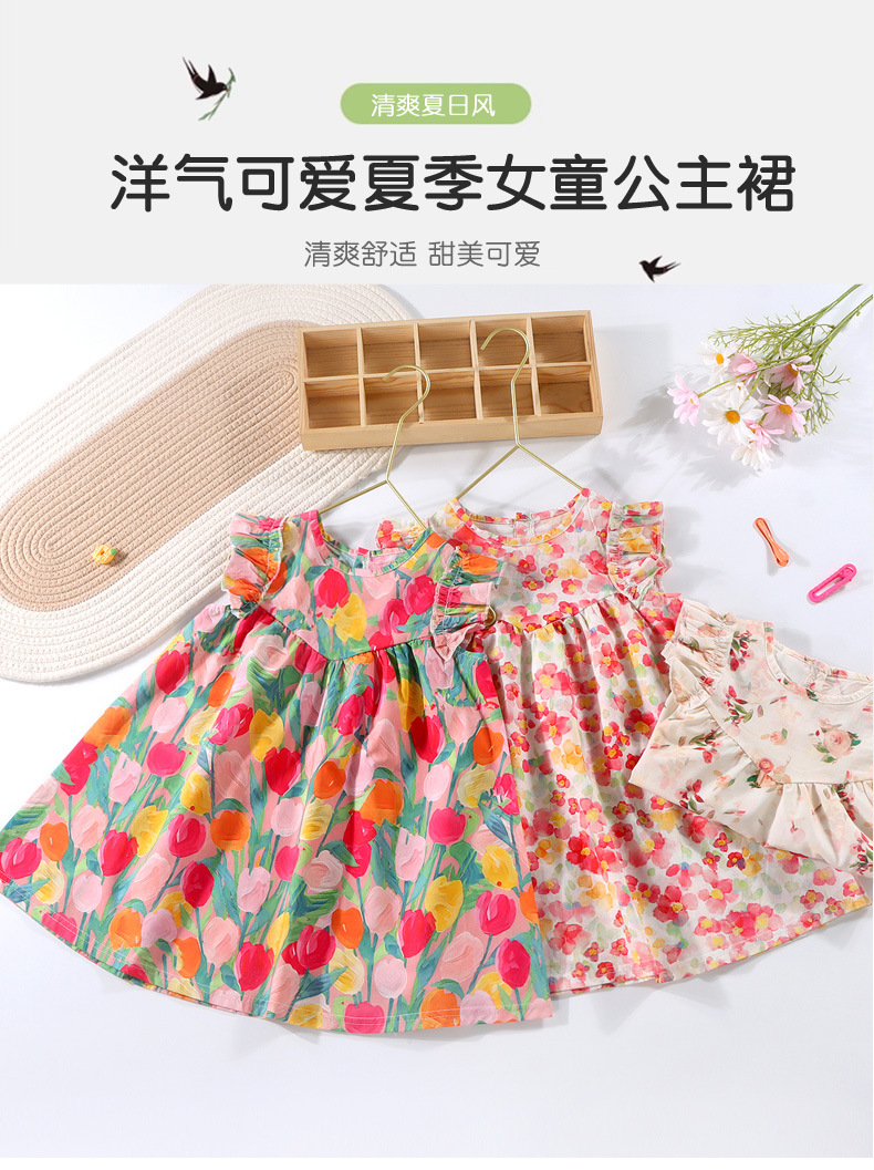 여자 여름 원피스 2025 새로운 세련된 튤립 스커트 비행 소매 유행 소녀 아기 조끼 원피스스토어 가기