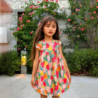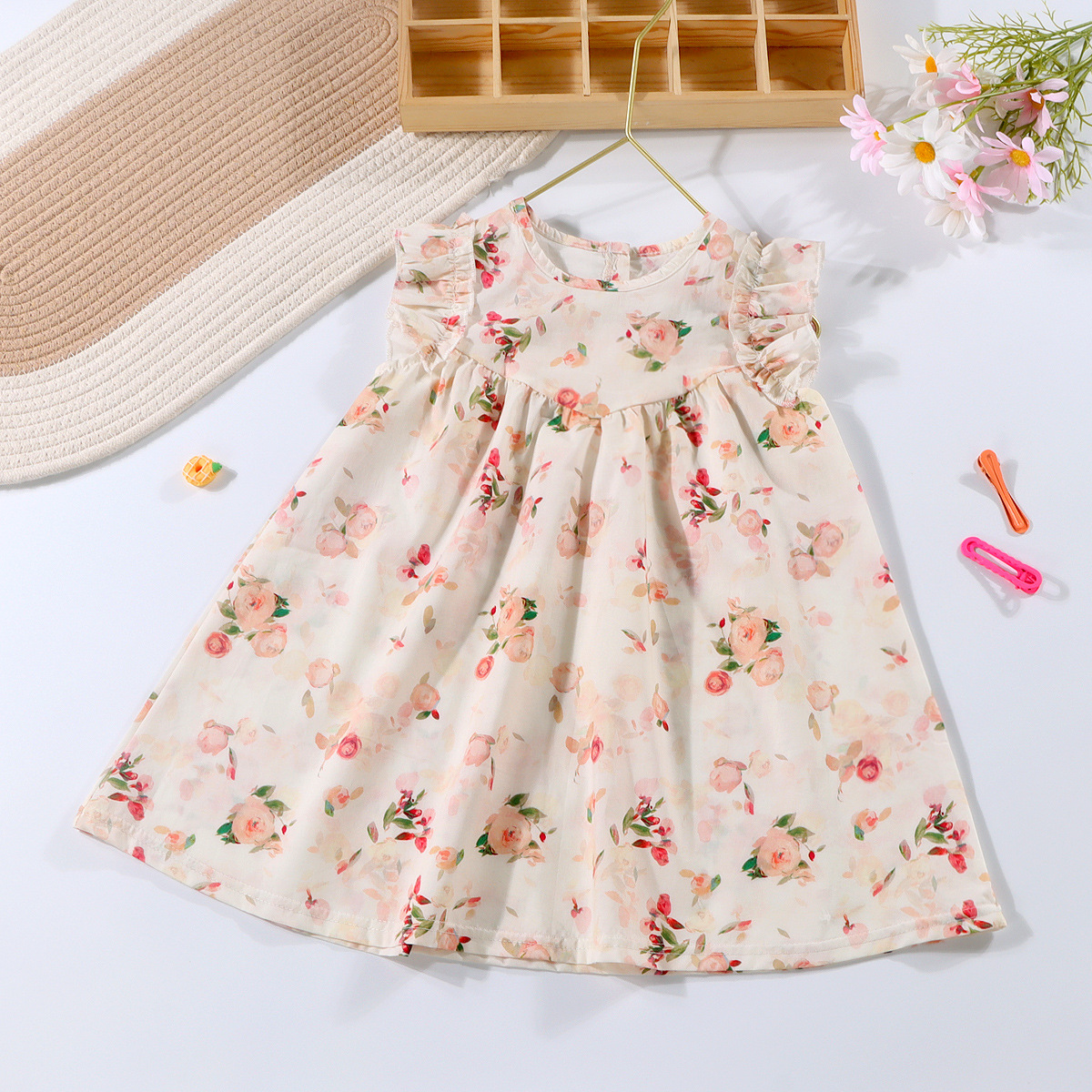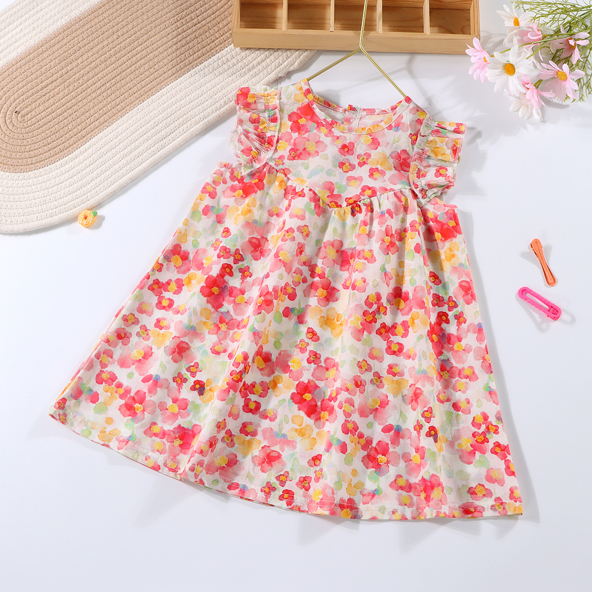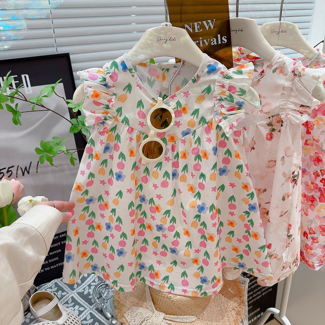 여자 여름 원피스 2025 새로운 세련된 튤립 스커트 비행 소매 유행 소녀 아기 조끼 원피스스토어 가기