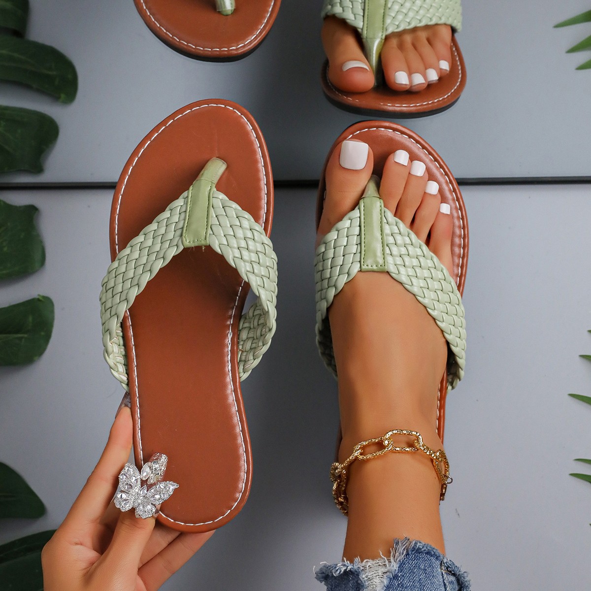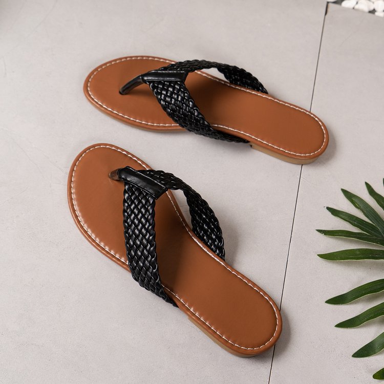 跨境大码女鞋2024夏季新款圆头平底扣搭外穿简约人字女式拖鞋