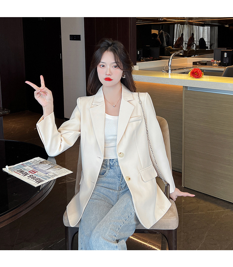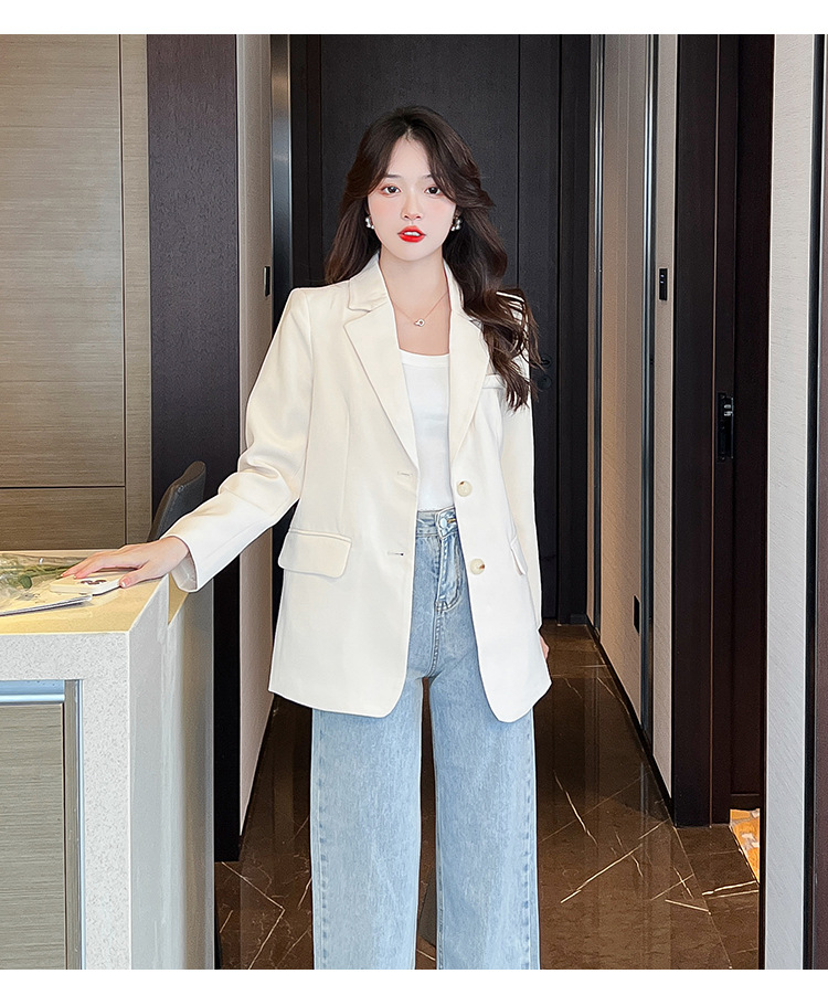 고급 화이트 세트 재킷 여성의 봄과 가을 새로운 한국 스타일 느슨한 캐주얼 세련된 세트
