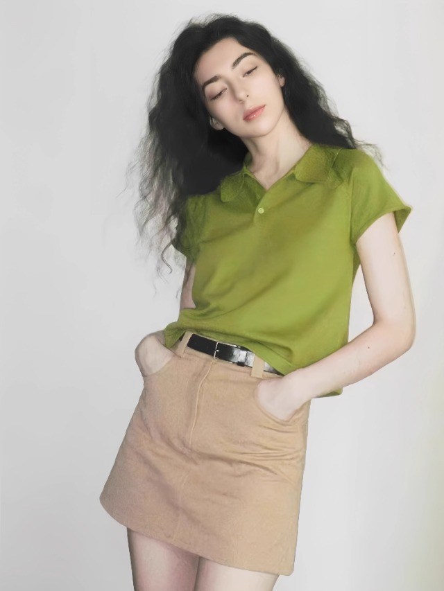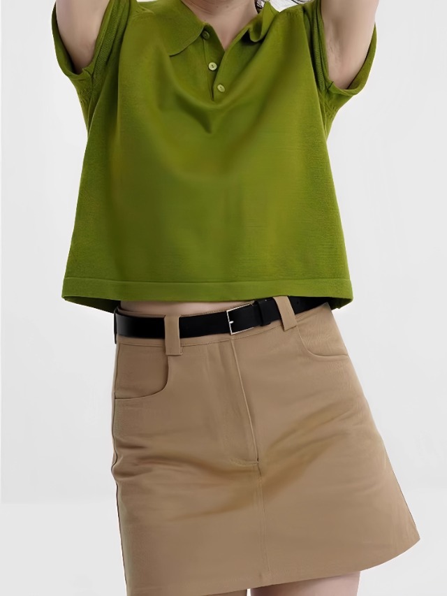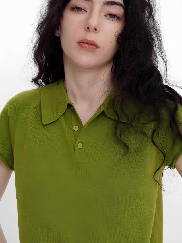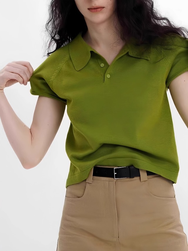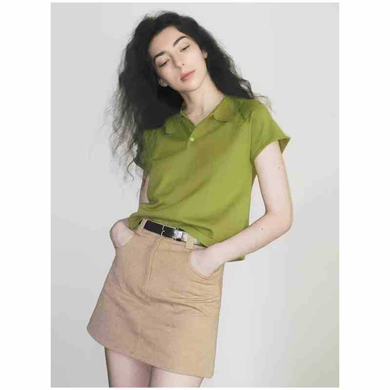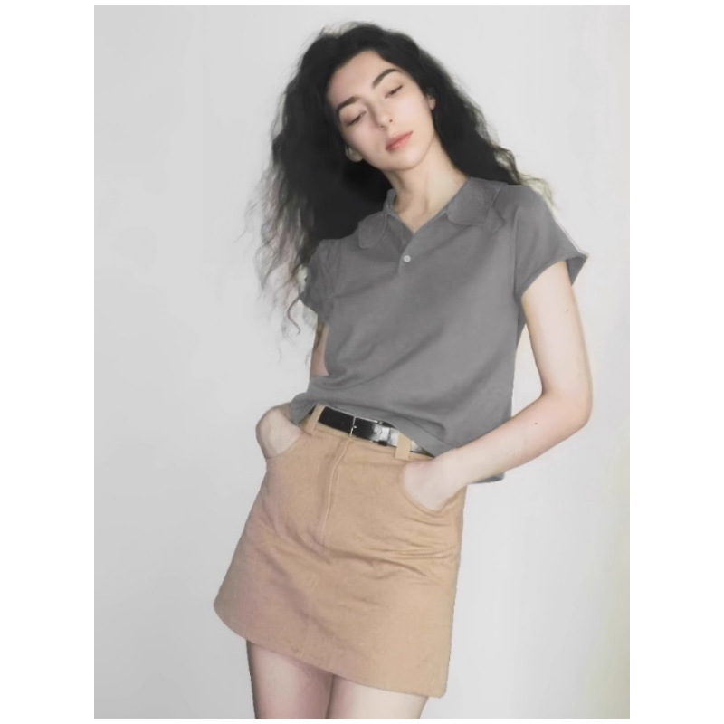 그레이 폴로 셔츠 라스 숄더 슬림 핏 반팔 티셔츠 쿨 사야 자매 아름다운 쇼트 탑 여성의 여름 뉴스토어 가기