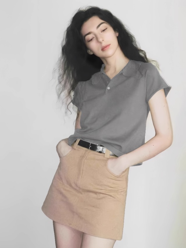 그레이 폴로 셔츠 라스 숄더 슬림 핏 반팔 티셔츠 쿨 사야 자매 아름다운 쇼트 탑 여성의 여름 뉴