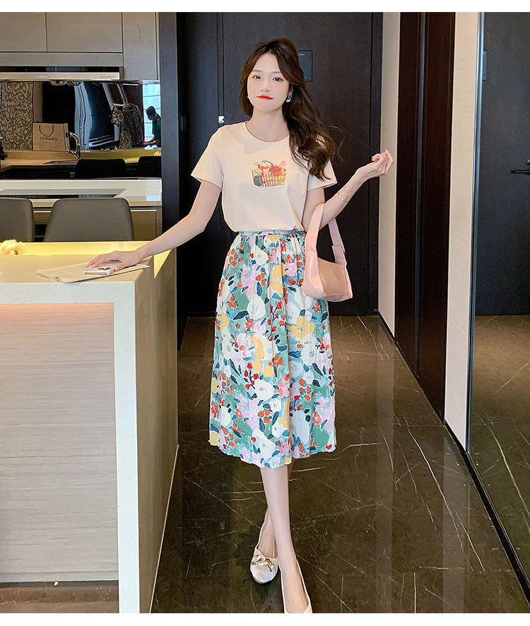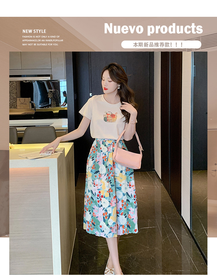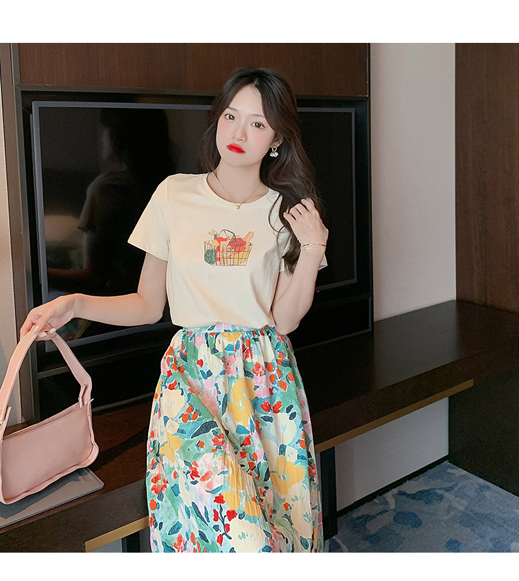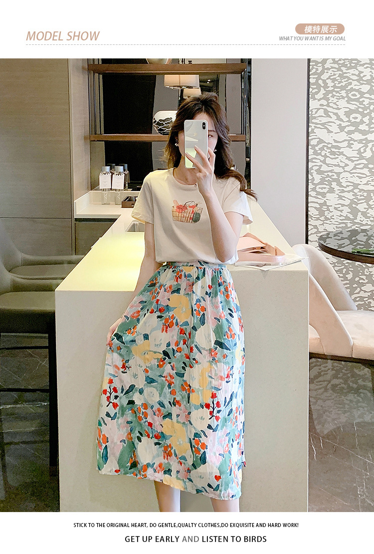 2025 새로운 여름 투피스 쉬폰 프린트 티셔츠/유화 스커트 여성 여름 리틀 A 라인 스커트스토어 가기