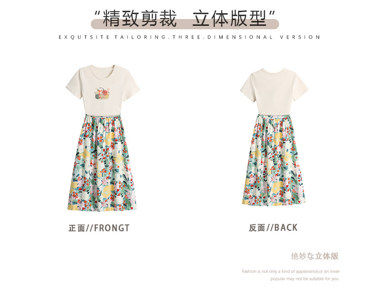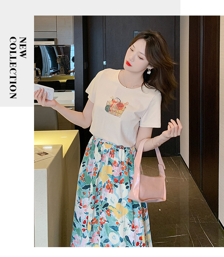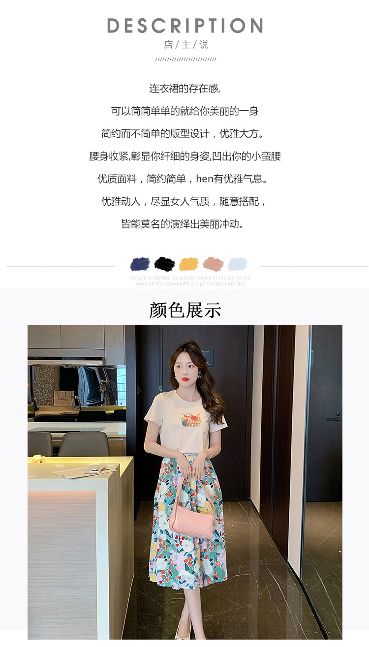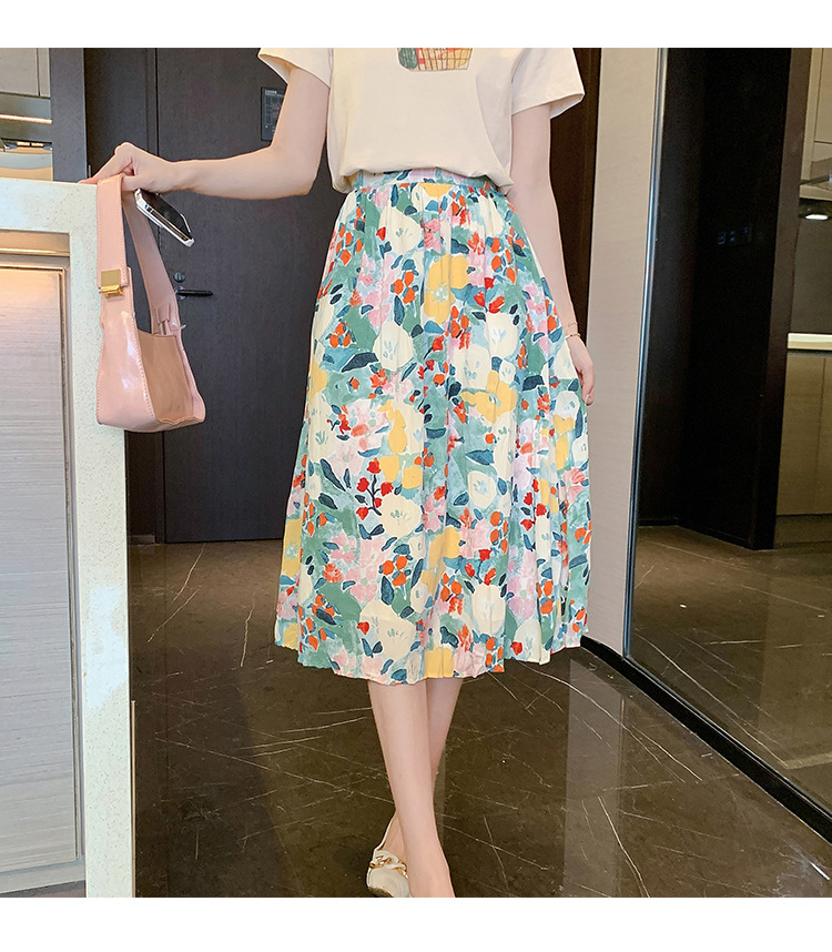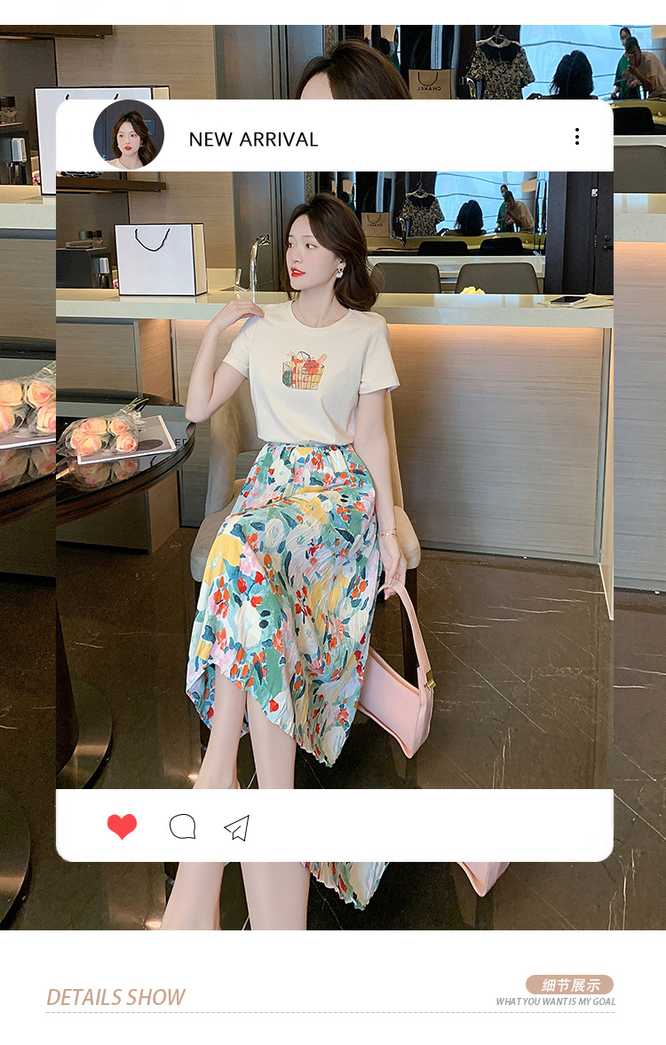 2025 새로운 여름 투피스 쉬폰 프린트 티셔츠/유화 스커트 여성 여름 리틀 A 라인 스커트스토어 가기