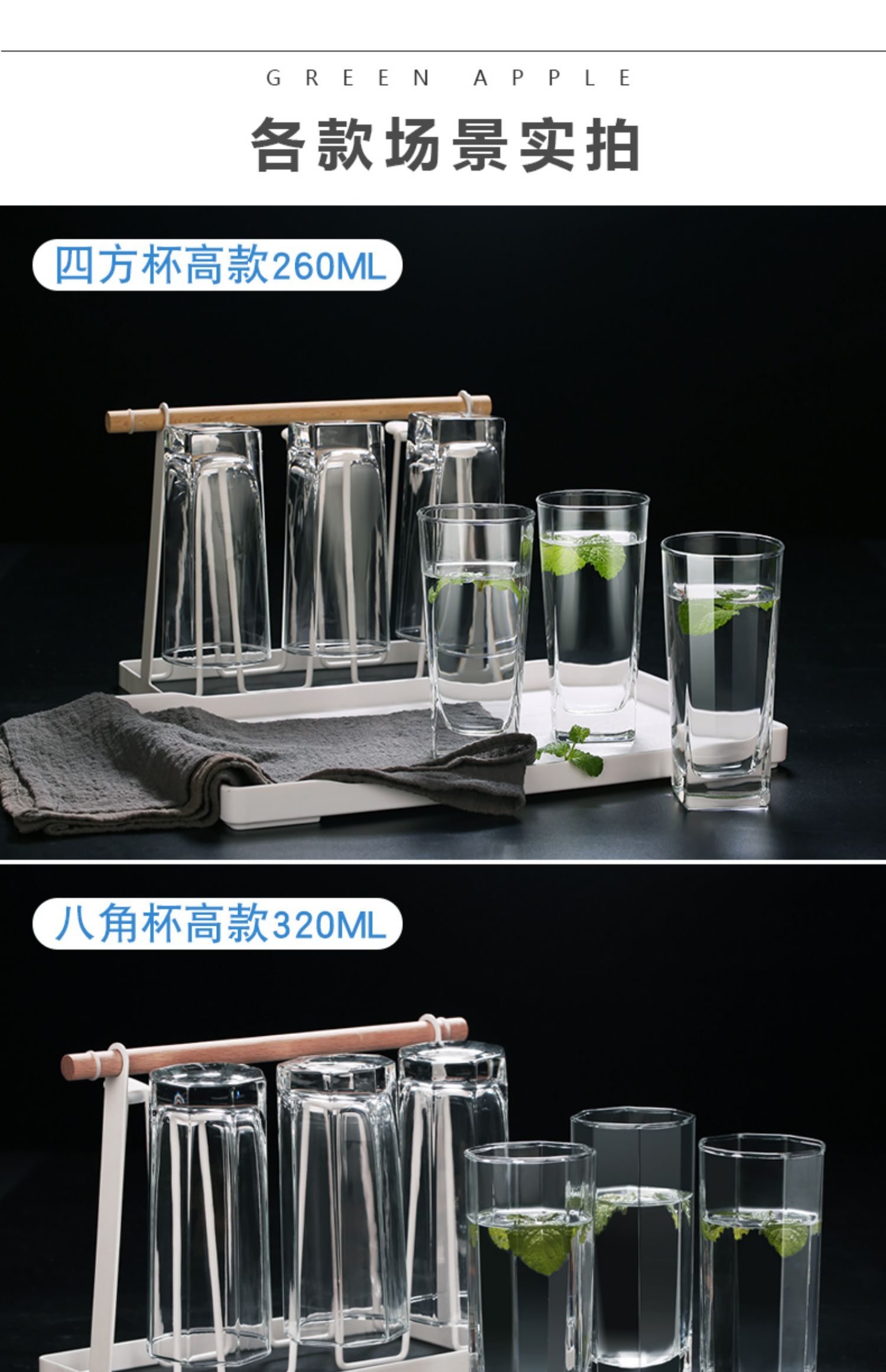 녹색 사과 유리 가정용 거실 물 컵 세트 두꺼운 내열 차 컵 와인 컵 음료 컵 6