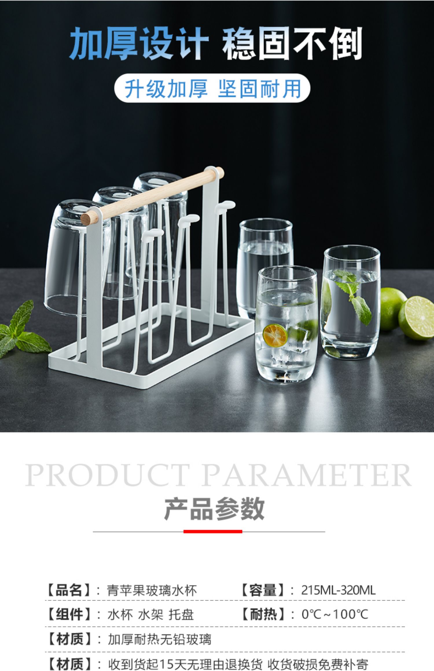 녹색 사과 유리 가정용 거실 물 컵 세트 두꺼운 내열 차 컵 와인 컵 음료 컵 6스토어 가기