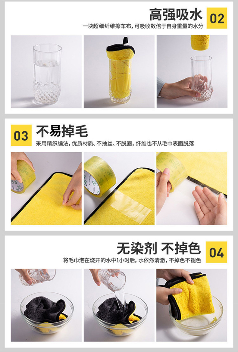 자동차 타월 자동차 타월 특수 보풀이없는 두꺼운 흡수성 세차 유리 큰 천 원활한 공장 도매스토어 가기
