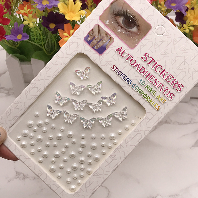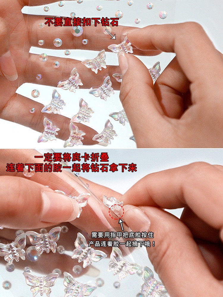 共12个不同款式 5款蝴蝶带钻加一款白色蝴蝶带白色珍珠 5款玫瑰带钻加一款白玫瑰带白珍珠 每张带纸卡包装是10乘以17.5CM