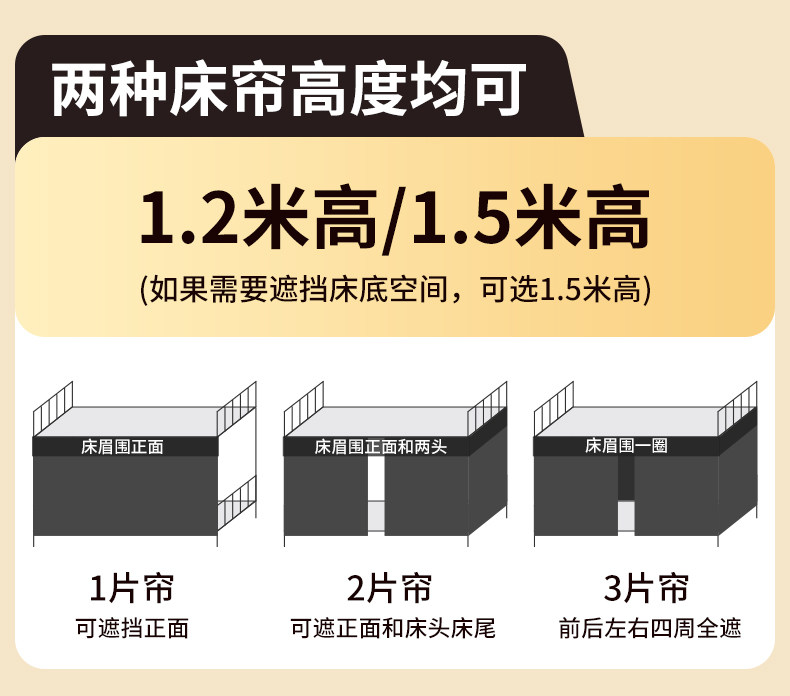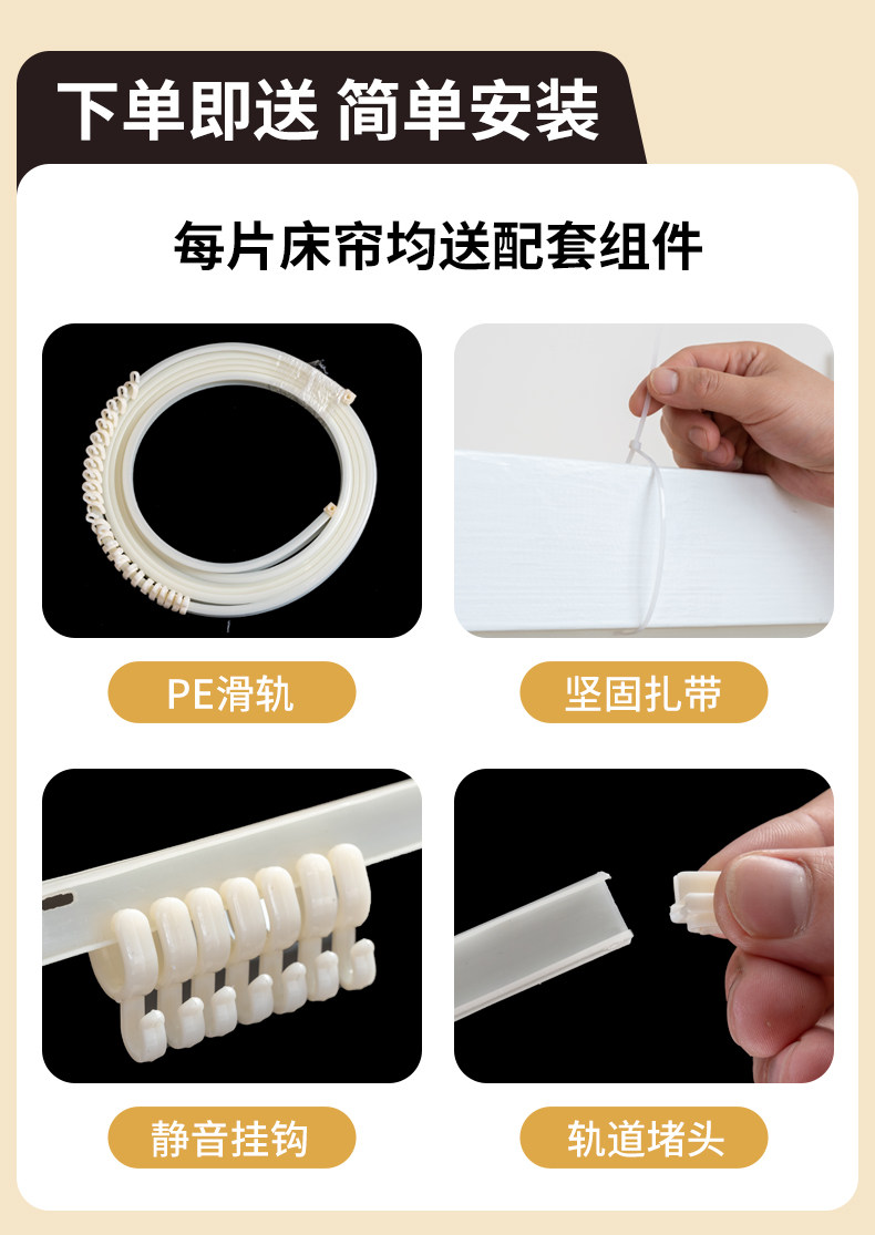 • 1.5m 높이 [슬라이드 레일 2m 쌍 + 커튼 1개 + 실 1개 + 침대 눈썹]