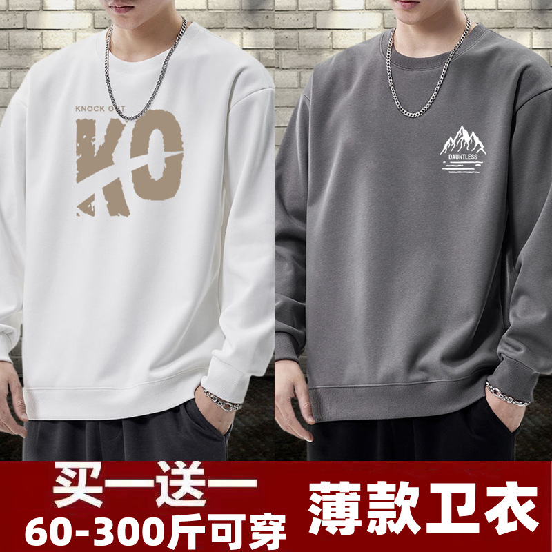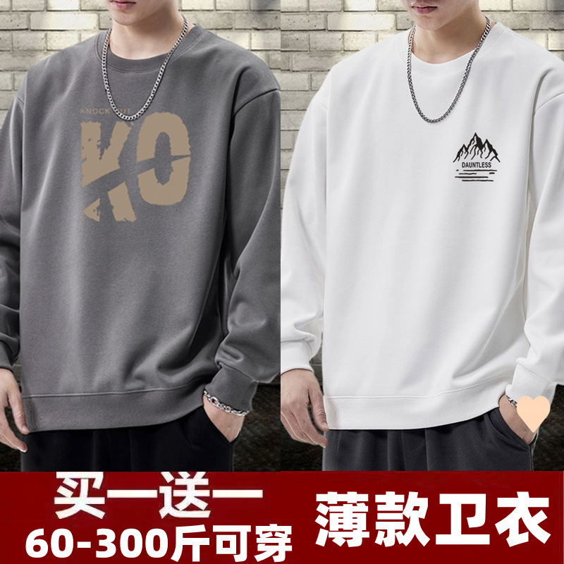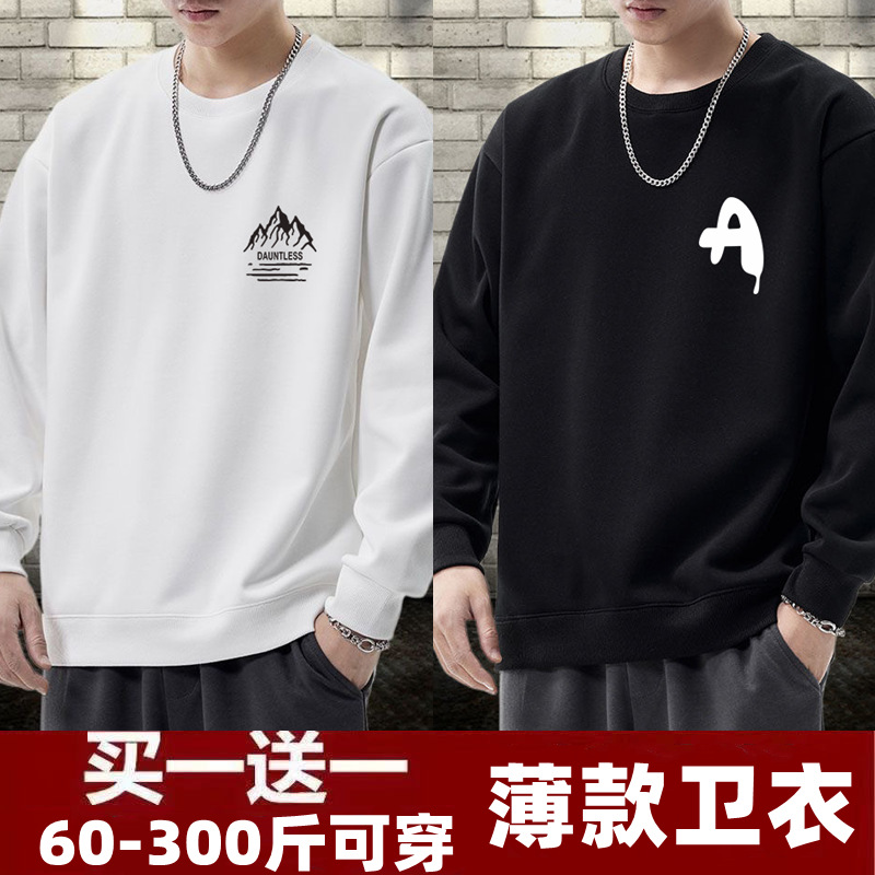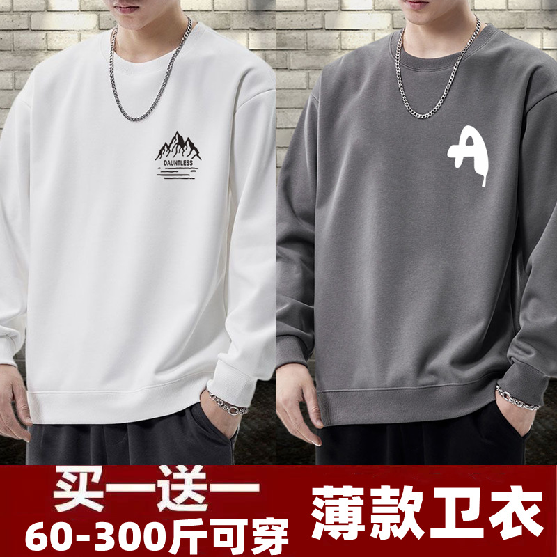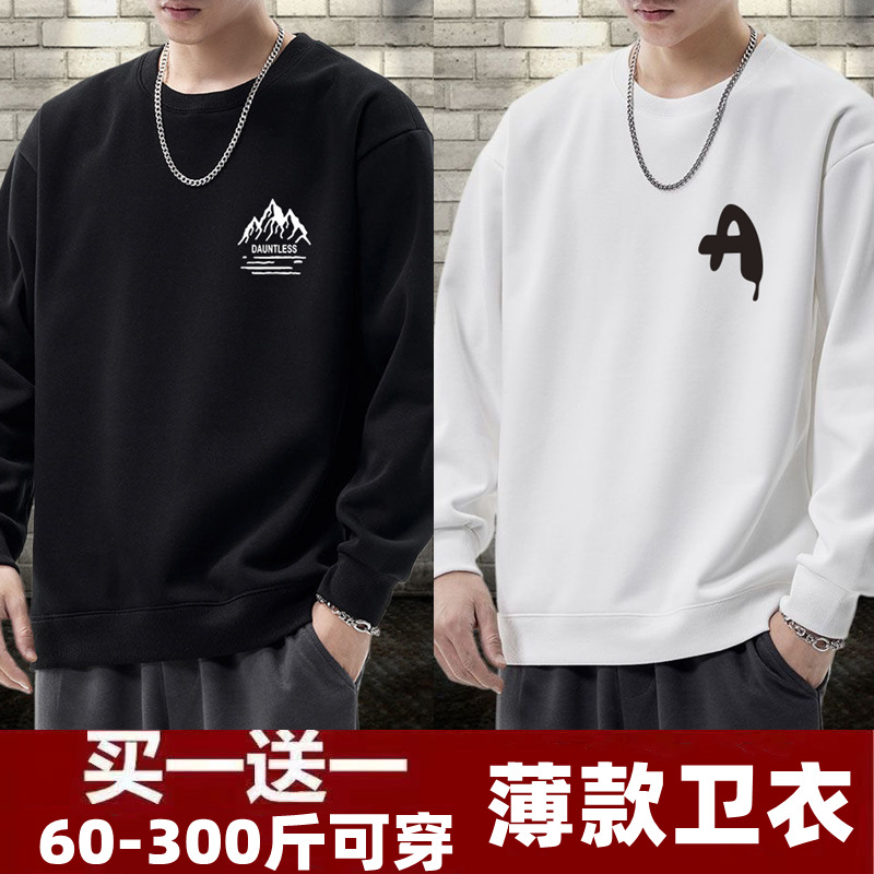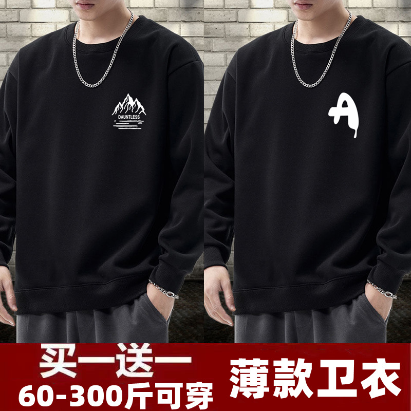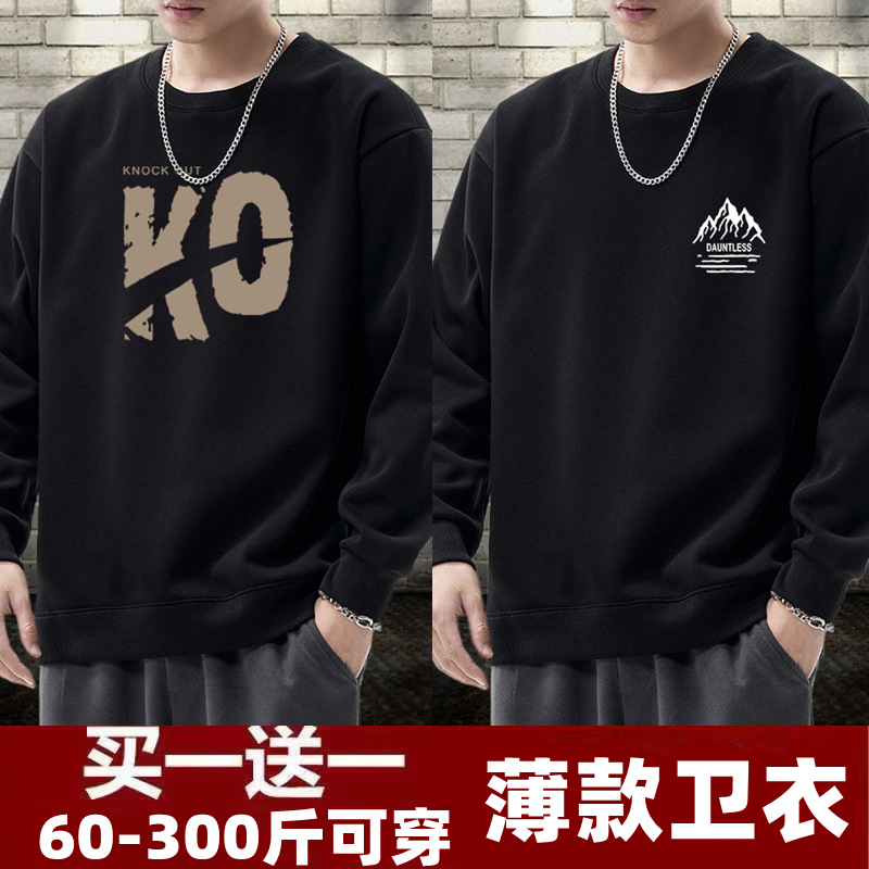 男士卫衣春秋薄款大码男装长袖圆领套头外套2024新款港风打底男装